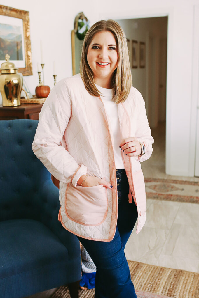 Lastly, the blush quilted jacket from Walmart is a great lightweight jacket. I consider blush neutral so it’s a great accent to any wardrobe. It’s pretty lightweight so it’s great for layering or wearing on its own on a warmer fall day. It also comes in two other really cute color options and for $45 it’s a no-brainer add to cart!