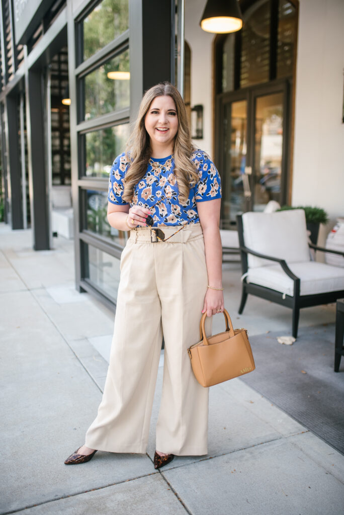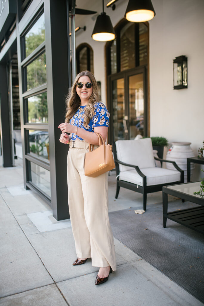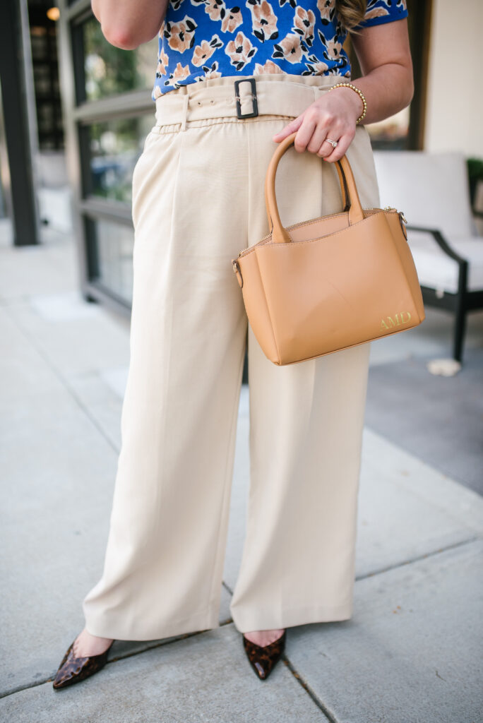 This khaki color is also perfect for summer because it feels lightweight but still very professional and is a nice change of pace from navy or black. I also complimented the light color trousers with a camel color handbag to stick all within the same color family.