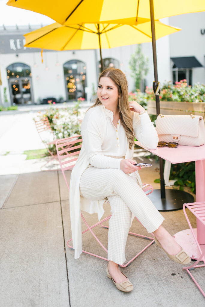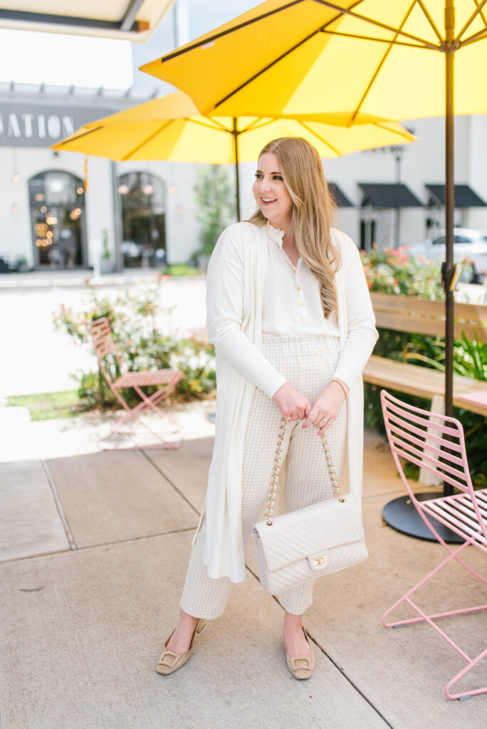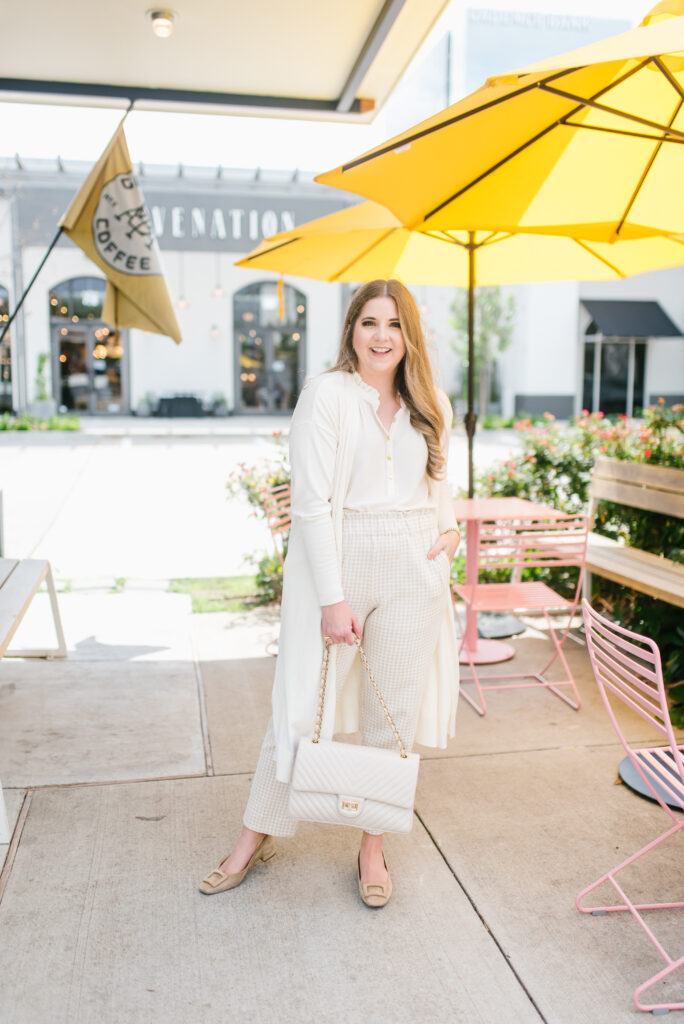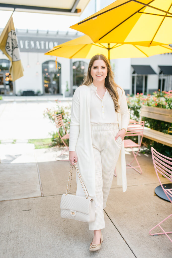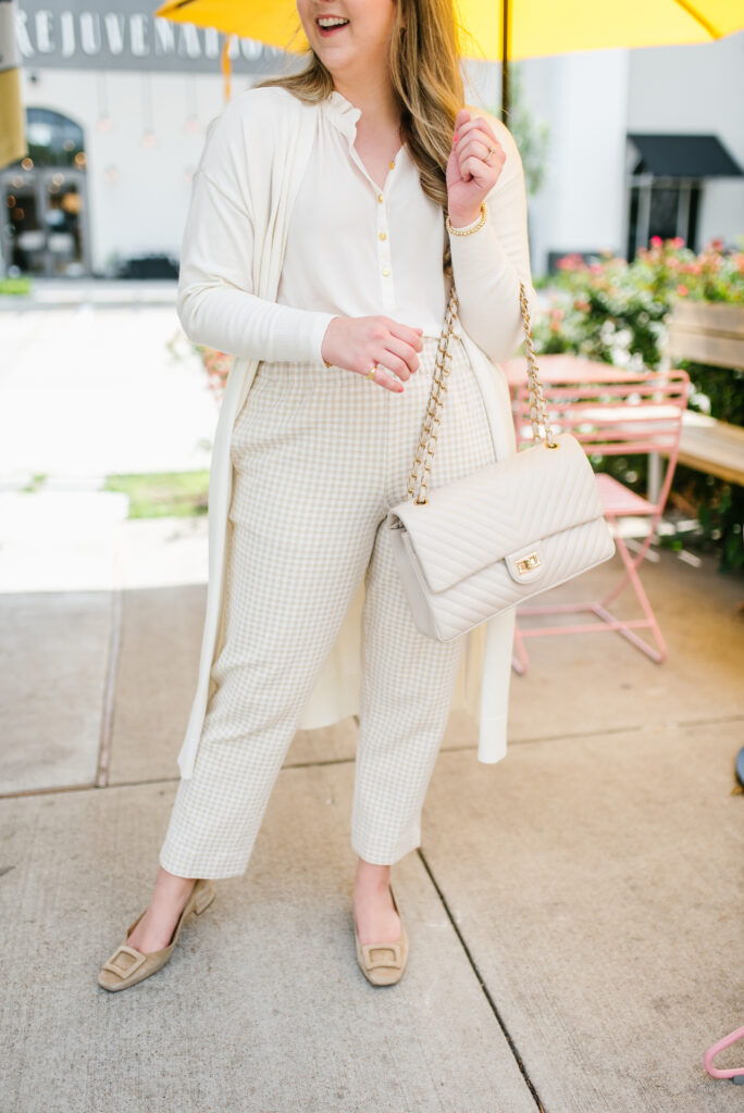 These gingham pants are another great summer staple piece because gingham is definitely a summertime print. So when looking for seasonal workwear pieces really keep in mind the print, the fabric, and the color.