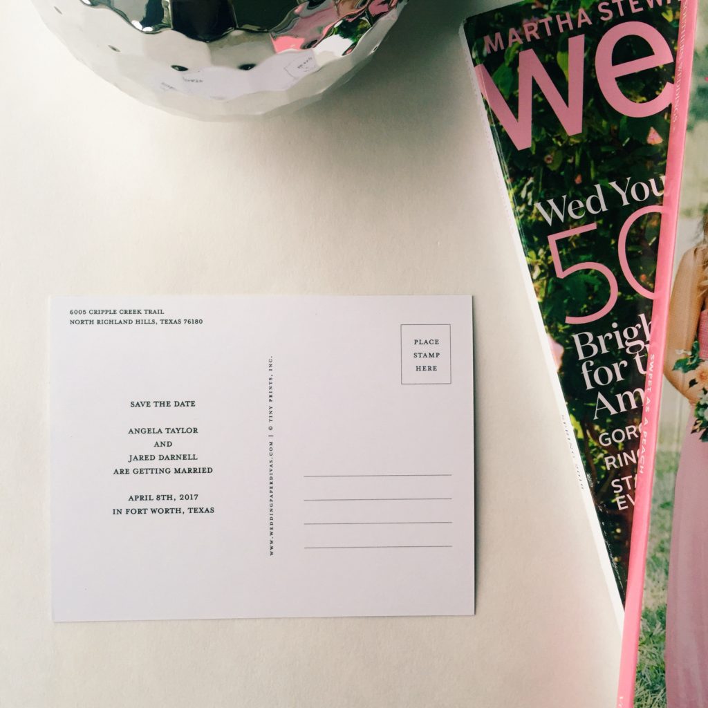 Collecting addresses was kind of an overwhelming task for me. My family and Jared’s family had a good chunk of addresses already complied, but tracking down our friends was quite an undertaking. I created a Google Doc to stay organized and then turned the names green once I had addressed them. I highly recommend this. The Google Doc also makes it easy to share with your bridesmaids for showers.