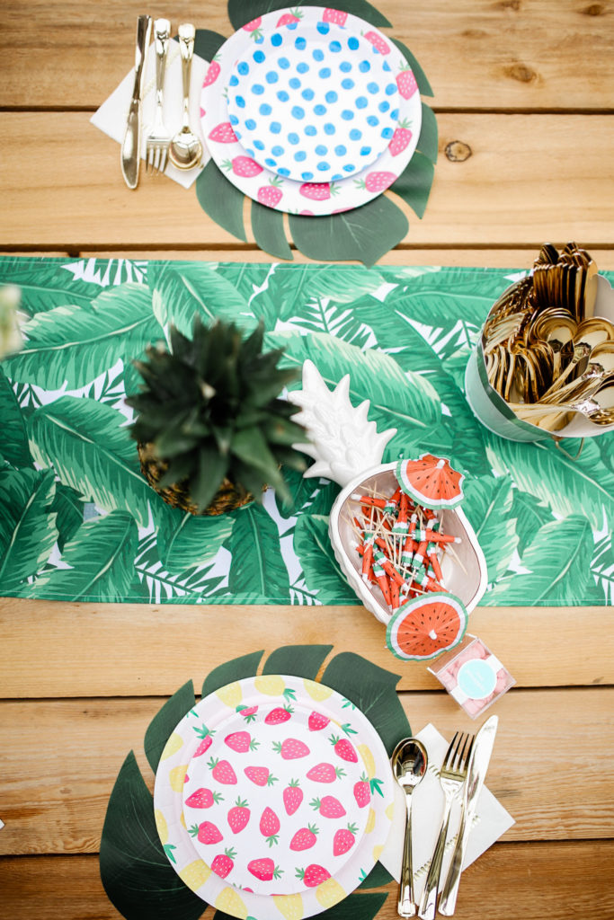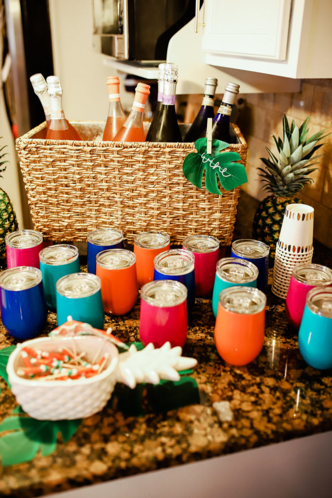 Get a head start early and keep an eye for a good deal anytime you are out. I snagged a cute gold and white bucket for silverware in the Target dollar spot. I grabbed these palm leaves from Amazon $12 for 60 leaves which doubled as decor and labels!