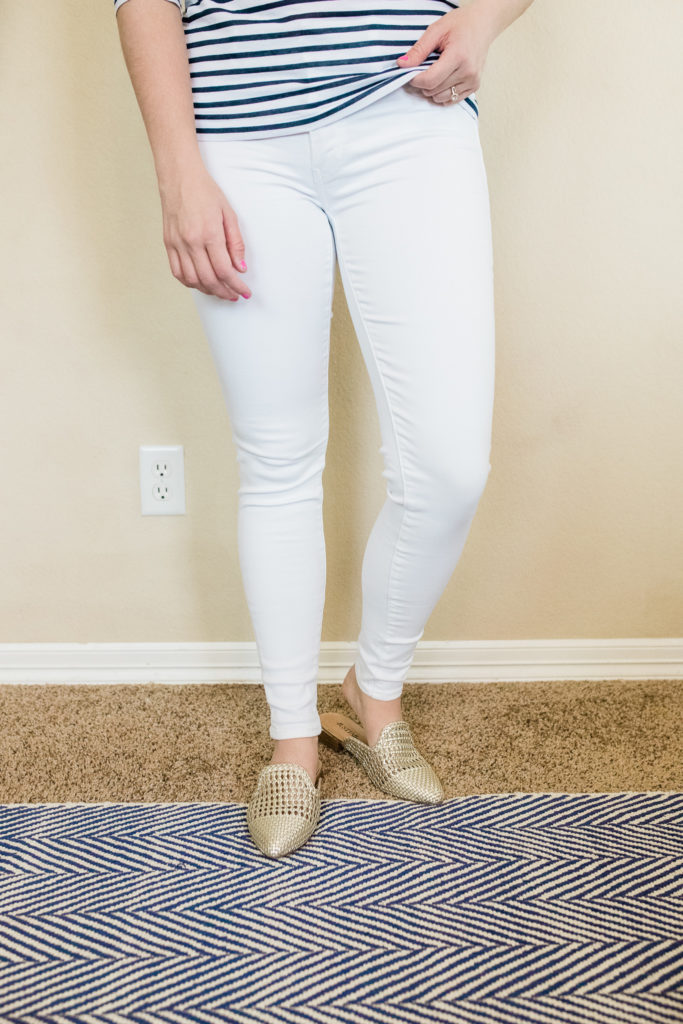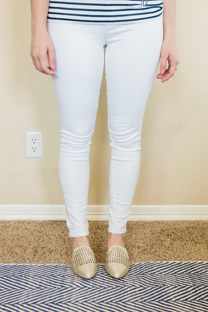 The J.Crew Factory pair was my absolute favorite pair and will become my go-to white jeans in the coming weeks. I feel comfortable wearing these to church, work and out without worrying that you can see through them or being too tight and not flattering.