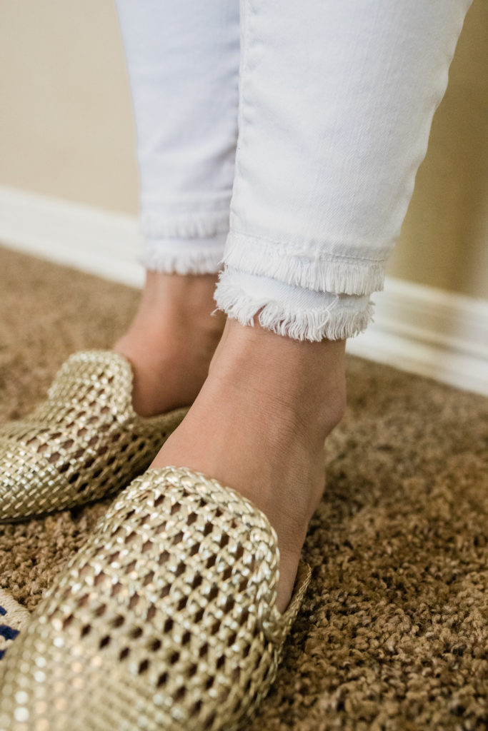 Next is the LOFT Modern Double Frayed Slim Pocket Skinny Jeans. Similar to the Old Navy pair, I did buy these last season and have had a whole year wearing them, but the style is still available. When looking at just the Old Navy pair and this pair, this pair is not even on the same playing field. These have been my go-to jeans for the past year. I really love the frayed detail, it adds a little more detail to plain pair of white jeans and looks like a double ruffle from afar. The fray also looks great when showing off cute summer shoes!
