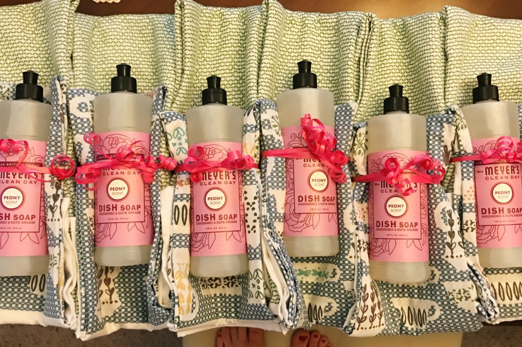 I can’t thank these ladies enough for their generous hospitable hearts. To show a little token of my gratitude I put together these thank you bundles with two dish towels and a bottle of Meyer’s Dish Soap.
