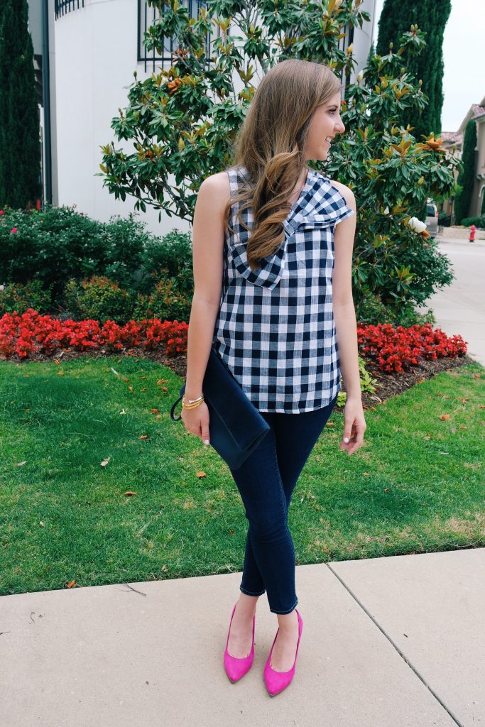 Bows and gingham… is there any more you could want for a tank? This navy and white gingham top is…