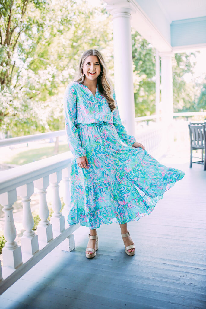 Another fave Lilly dress. This one runs true to size and I got my normal size since it’s fitted up top and an a-line skirt. This dress is perfect for cocktail parties, charity events, holiday parties. It’s my go-to cocktail dress because you’re guaranteed to stand out at the party.