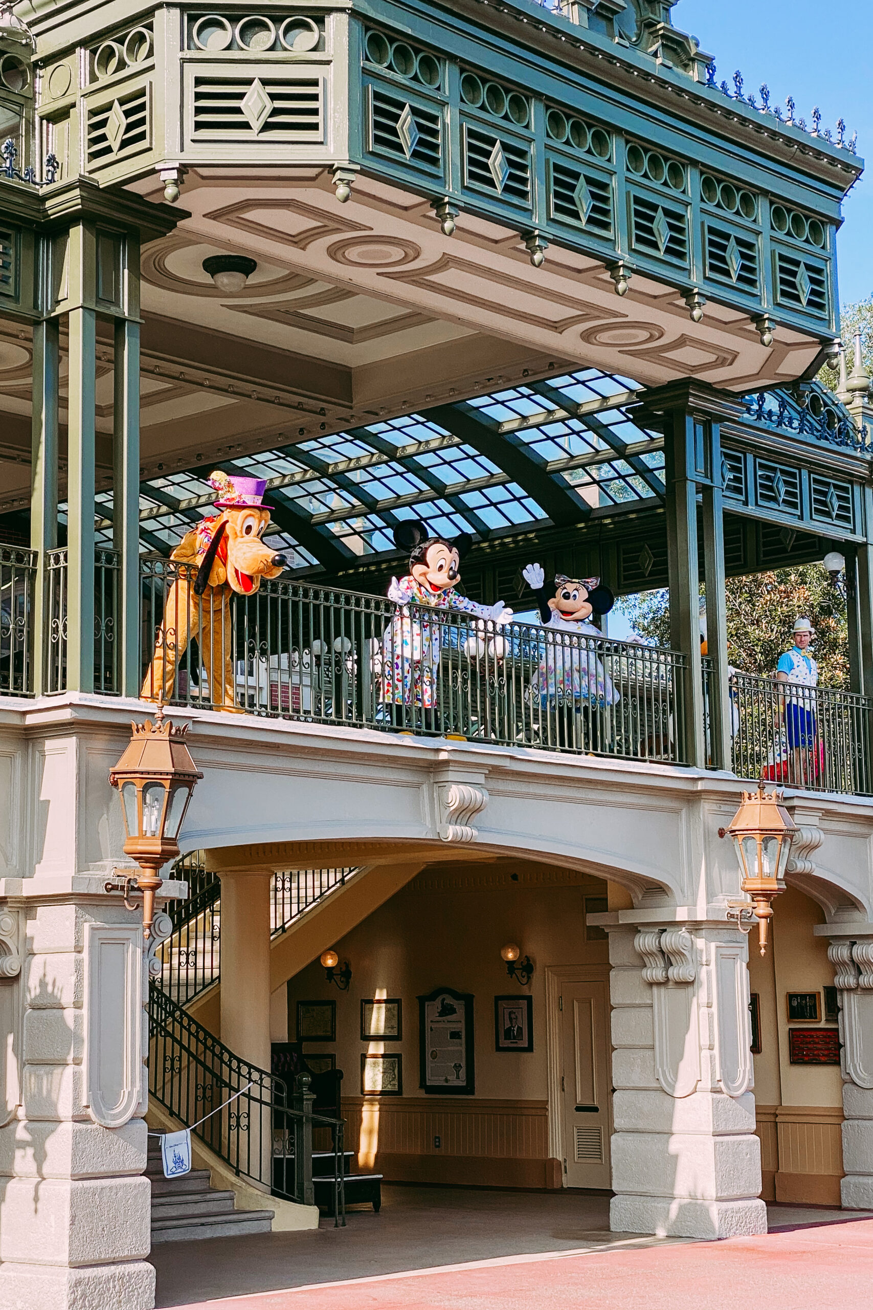Once we got Magic Kingdom our temperatures were taken before entering the park. I will say this did make me nervous because I was like what if I got too hot standing outside or heaven forbid got COVID on the plane and have a fever and don’t know it. Luckily, I was fine and entered the park as normal. When we walked into the gates the classic Disney characters were standing on the bridge waving and greeting everyone. This was about as close as we were going to get to them all day, but it was a nice hello to get the day started.