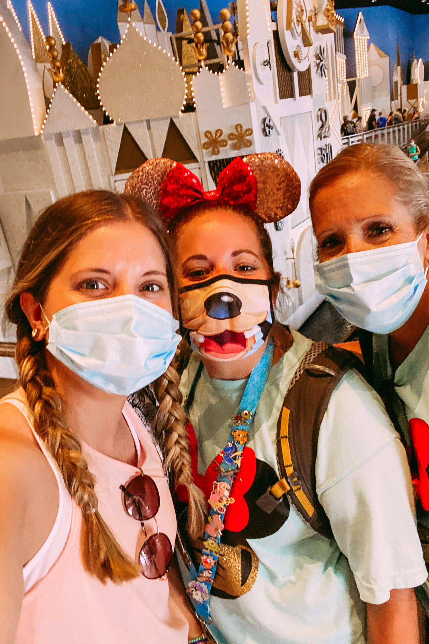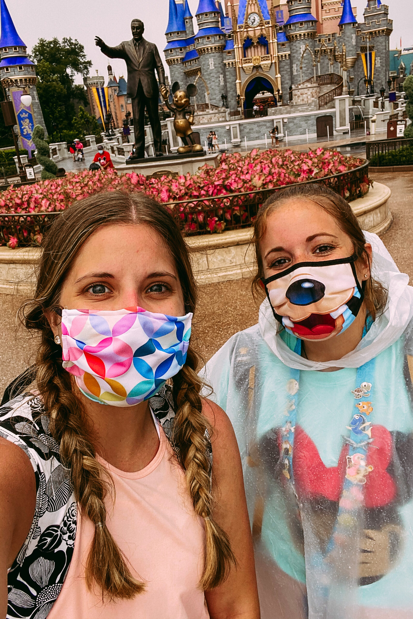 It was Florida in the middle of the summer so it was definitely hot with masks on but not unbearable. My sister bought a mask at Disney World and said it was very comfortable, but my mom and I opted for the disposable kind because it was easier to breathe in and not as hot. My mask ended up breaking at about 6 PM, but luckily I had a backup.