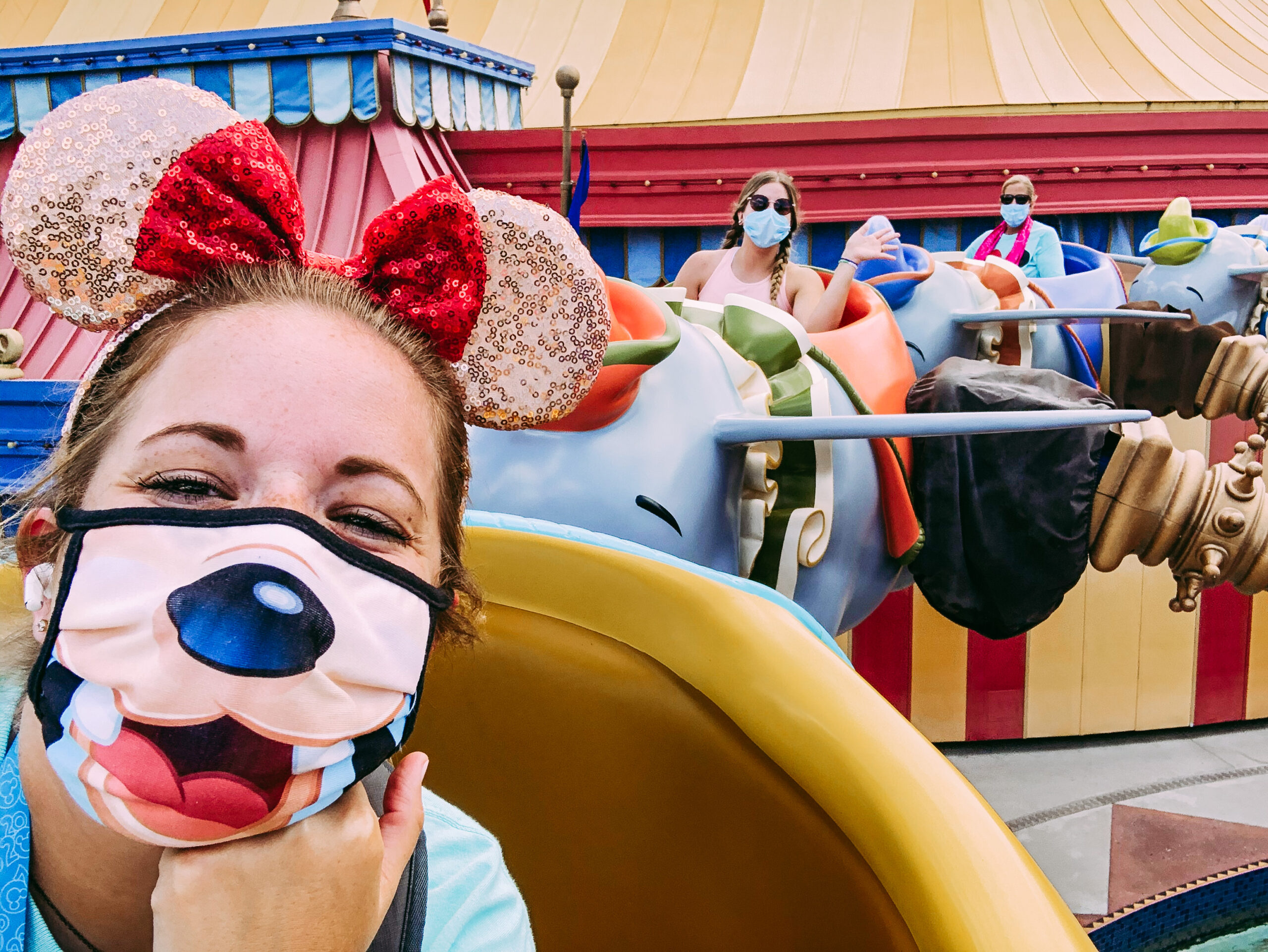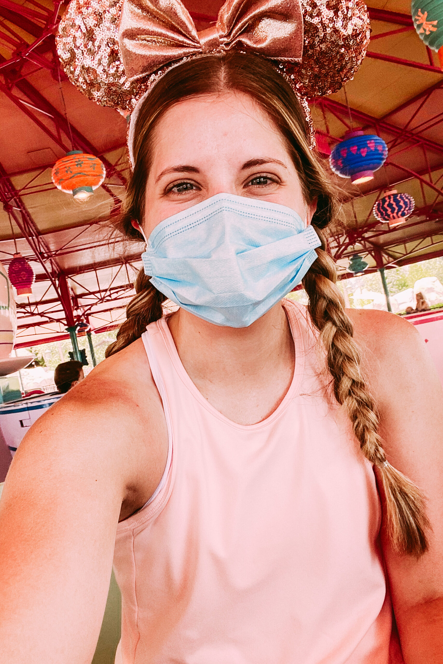 The entire park felt so safe and clean. There were markers for standing in lines both for rides and food. The rides were temporarily put on hold to clean in between rides. Parties were limited when getting on rides. Most of the time you had the ride completely to yourself. Lastly, masks were taken VERY seriously. Here are a few examples of how serious masks were enforced. When we were on the Jungle Cruise one boy about 7 years old had his nose exposed and was asked politely to pull his mask up. My sister and I even rode Space Mountain, which if you don’t know is completely in the dark, we were the only ones on the coaster so my sister pulled her mask down. Well, they take your picture on the ride and when we got off the cast member let us know that masks always have to stay on even during rides. Lastly, I really wanted a photo on the teacups so I took my mask for approximately 5 seconds to snap a pic and was told to put it back on immediately.