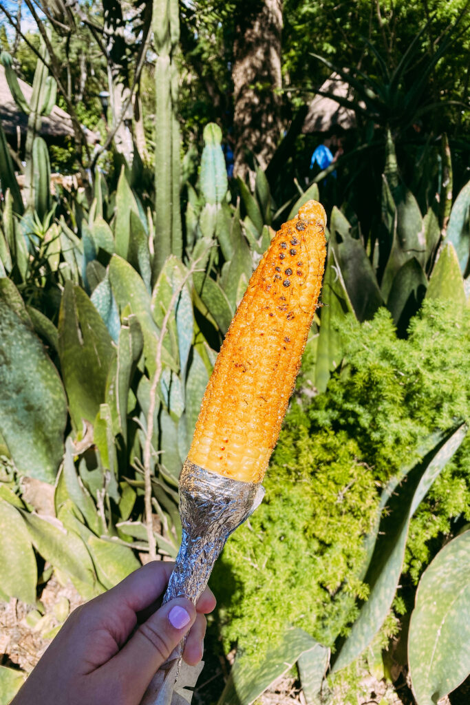 From Pandora, we headed over to Africa to get the Harambe Market Street Corn available at the Harambe Market Fruit Stand. This was by far the BEST things I ate at Disney.