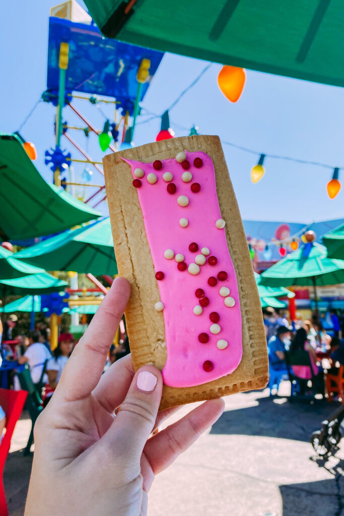 From there, we walked around took pictures, got popcorn, and strolled over to Tower of Terror (G+). After Tower of Terror, we popped in the creation of Disney exhibit and watched Vacation Fun (an exclusive short film). We had scheduled our mobile order for lunch at Woody’s Lunch Box so we ate lunch. I got the iconic Totchos and pop tart and melissa got the Turkey sandwich as well as a pop tart.