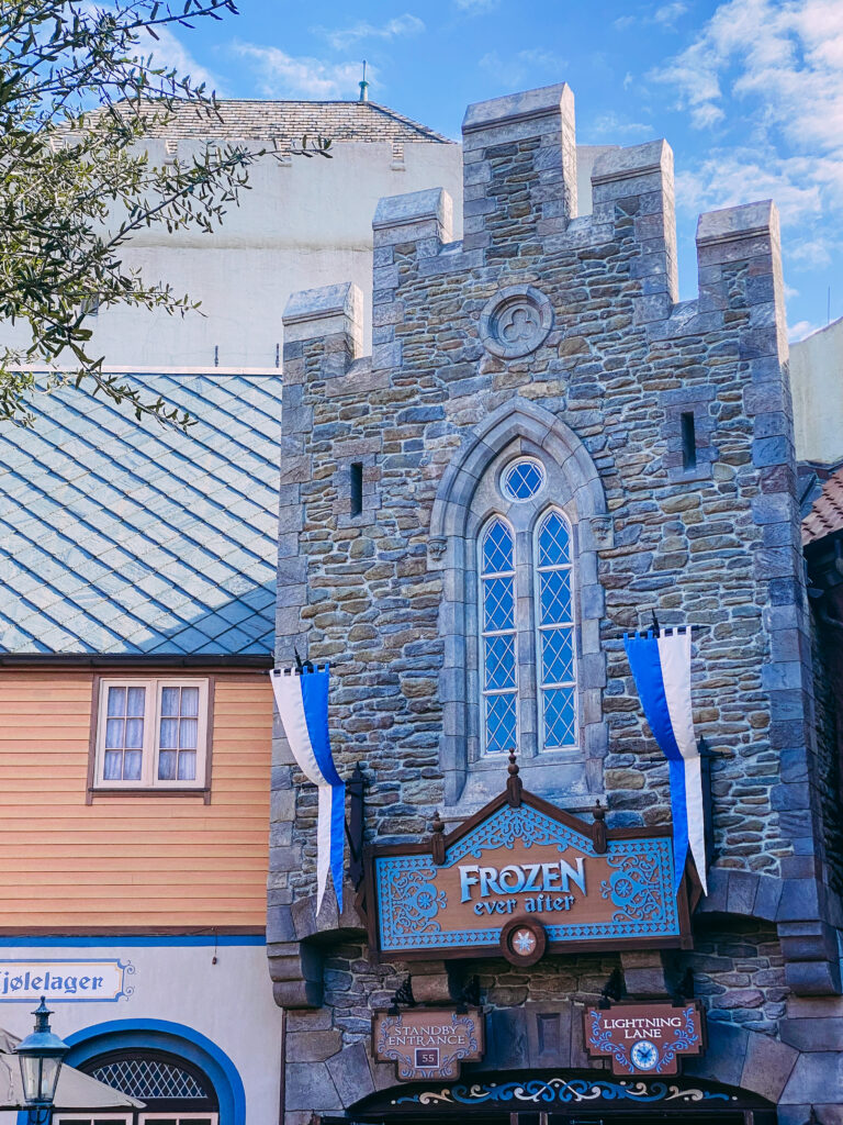 Once we got into the park I hustled in to get in line for Frozen. I made it from the Canada entrance to Frozen in 6 minutes (honestly, it could be a record lol). The line for Frozen was already at a 45-minute wait! We were cutting it super close because we had a reservation from 10-11 AM for Ratatouille. We ended up making it but it was a CLOSE CALL!