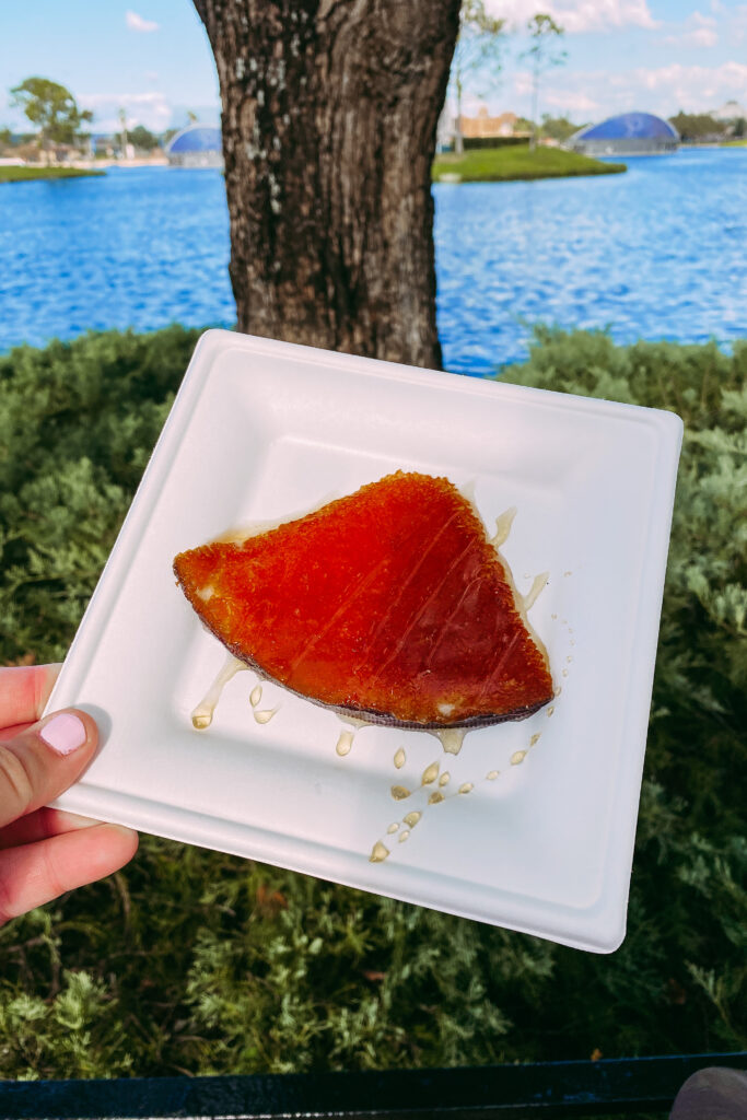 We then rode Soarin’ and had the best seats! Then we went back to Mexico at about 4 PM to walk the full showcase. It was the end of the Food and Wine Festival so I really wanted to stop and try as much as my stomach would let me. Here’s what we ate: