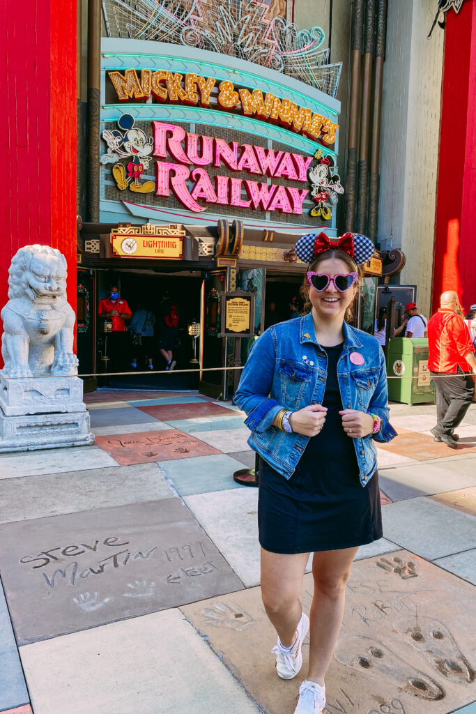 We ended up rope dropping Slinky Dog Dash so it was fine but this goes QUICK! We still ended up waiting for Slinky Dog Dash for about 45 minutes in line. After that, we stayed in Toy Story Land and rode Toy Story Mania then it was time for our Minnie and Mickey’s Runaway Railway reservation time. This is definitely one of my top 5 favorite rides.