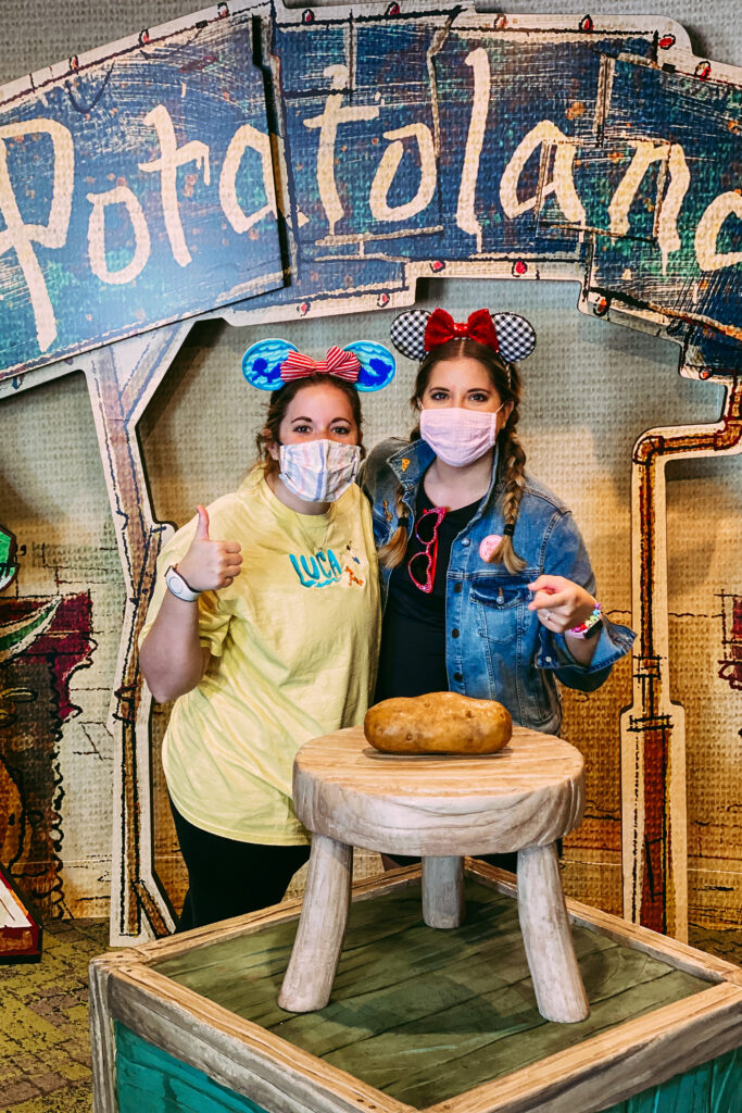 We grabbed a seat to watch the Beauty and the Beast show, which was pretty entertaining because the cast had to stay 6 feet apart which made for some interesting choreography. We then hit up Minnie and Mickey’s Runaway Railway again because the line was only 40 minutes and then finished the day at Toy Story Mania one more and yes, Melissa did beat me.