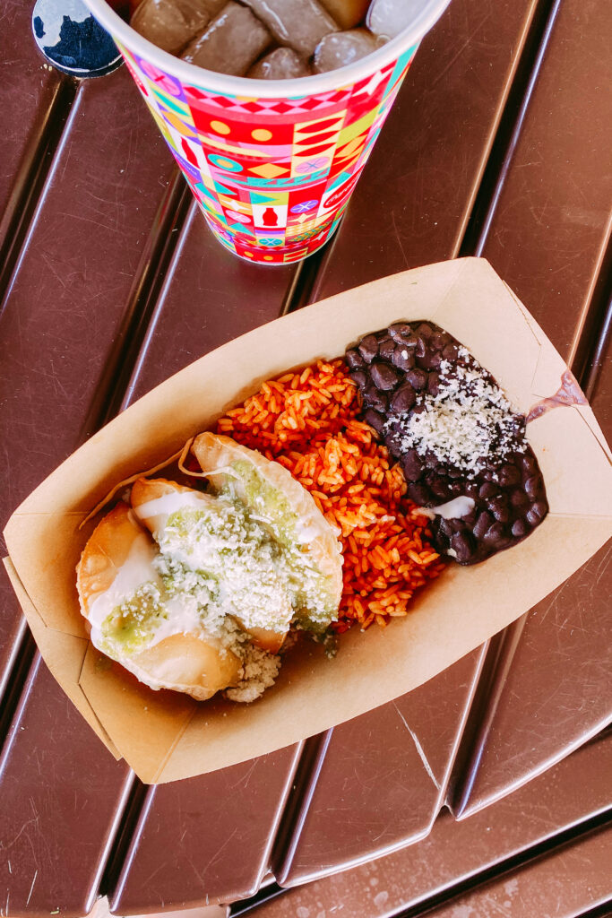 We then rode Soarin’ and had the best seats! Then we went back to Mexico at about 4 PM to walk the full showcase. It was the end of the Food and Wine Festival so I really wanted to stop and try as much as my stomach would let me. Here’s what we ate: