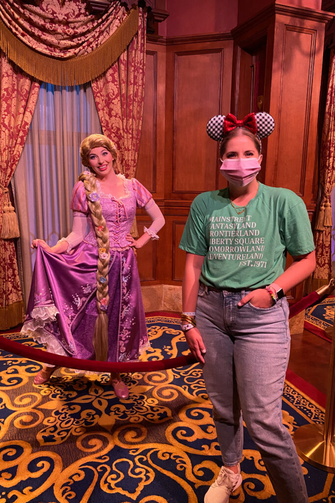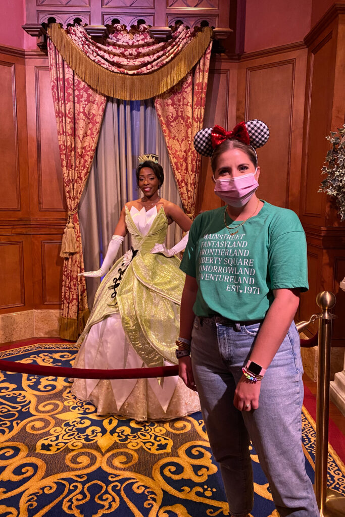We had a few must-ride things and then wanted to watch the parade and fireworks. We started the night off at Starbucks (duh) then went to Space Mountain, Buzz Lightyear, and Little Mermaid. We stopped in the Fairytale Princess Hall and saw Rapunzel and Tiana and then rode the Carousel. The carousel isn’t something I would typically ride but there was no wait so why not!