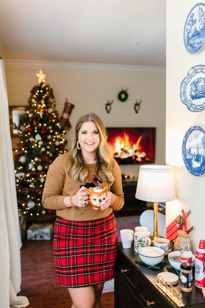 Lastly, your mugs don’t have to match. Pull out all the fun mugs you’ve collected over the years and even toss in some holiday ones (if you have them). This will be such a hit and a good conversation starter with who got which mug.