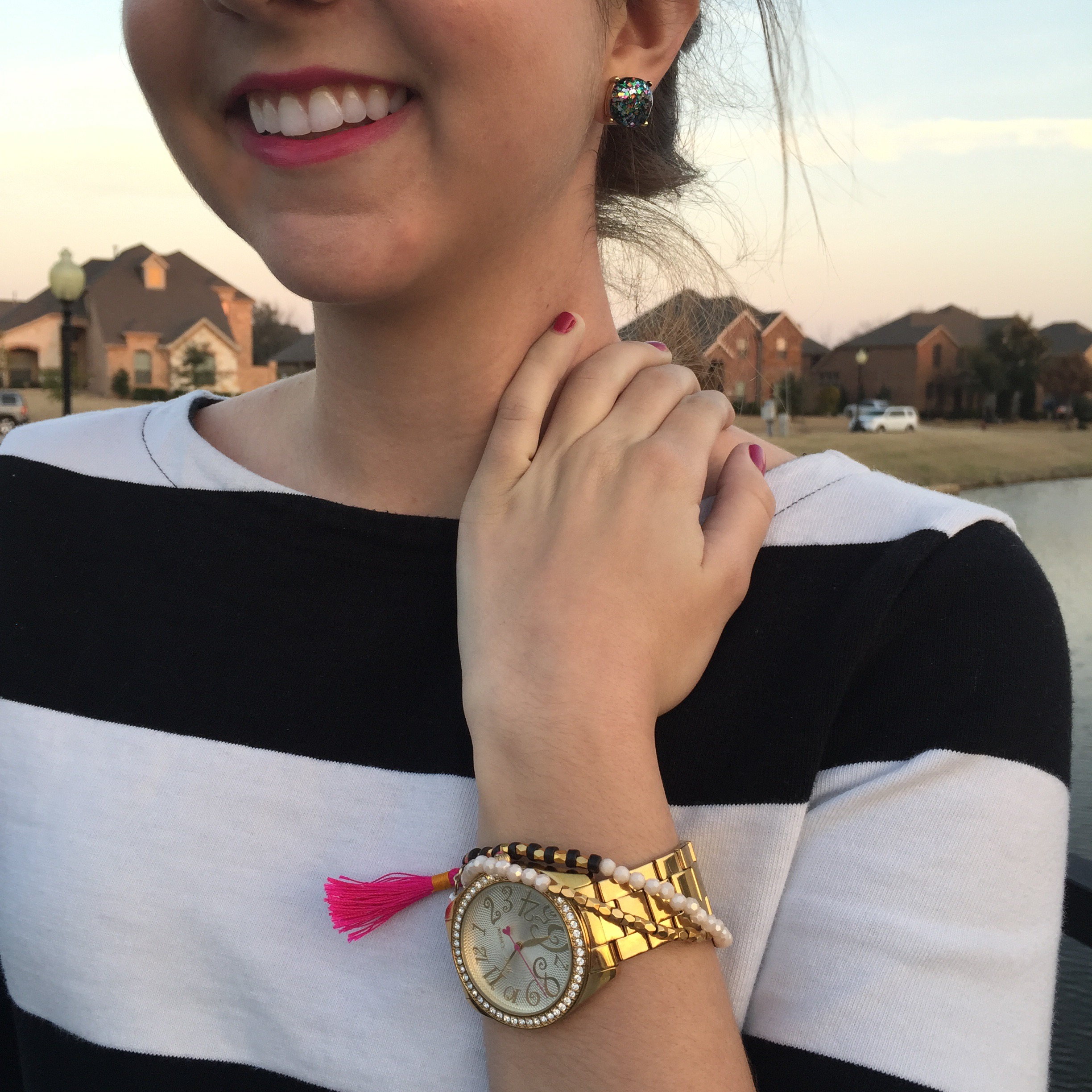 I’m a sucker for Kate Spade … who isn’t? But who also wants to spend $40 on a pair of earrings when you can make similar ones yourself?! All over my Pinterest and Instagram feed these “DIY Kate Spade Earrings” kept popping up, so I decided to see if it was as easy as everyone claimed it to be. I saw several different methods from Mod Podge and loose glitter, to clear nail polish and loose glitter, to what I ended up using, glitter nail polish with a clear top coat. The glitter nail polish and clear top coat was super easy and took little to no time. There was also no cleanup. I made my own pair and then my mom and sister loved them so much they wanted a pair so I thought I would share my process with you.