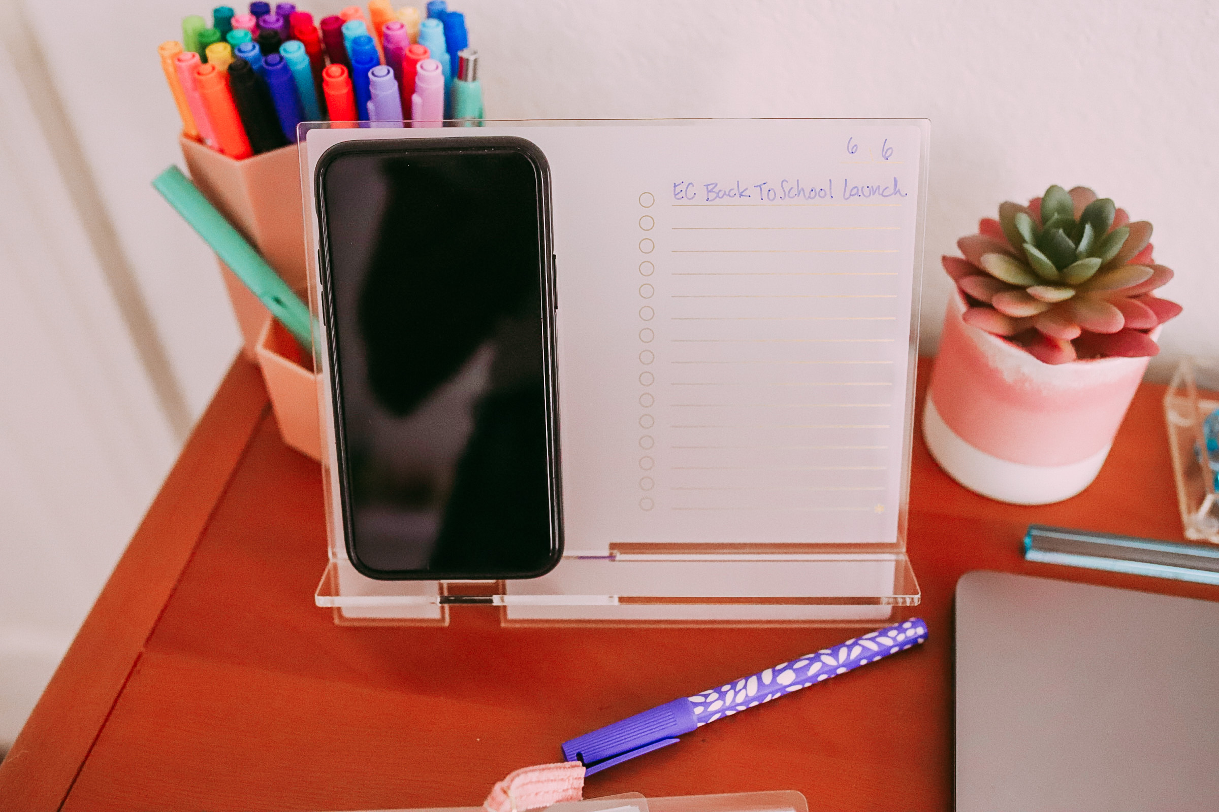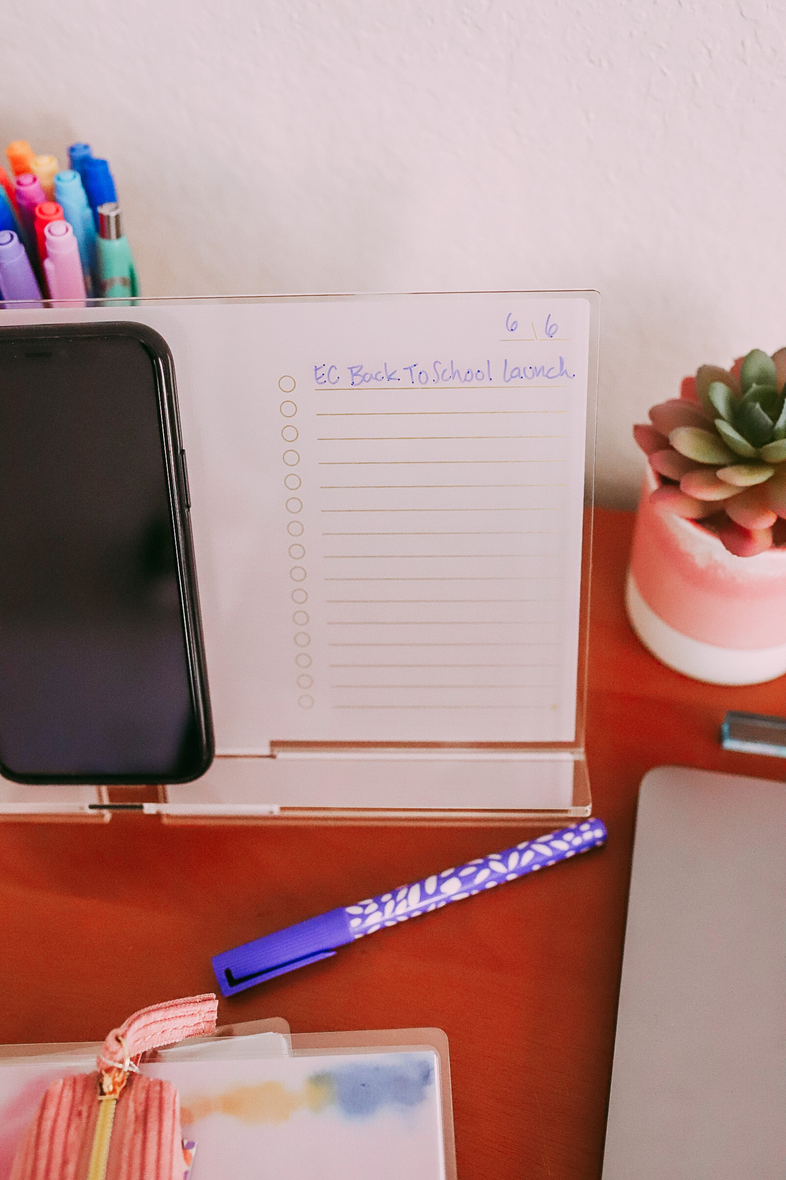 This is the product I was most excited about. I saw a sneak peek of this on the Erin Condren Instagram account and was dying to get a closer look. This is an acrylic wet-erase desk stand. The left is designed to hold your phone with a small hole for your phone charger and the right side is a wet erase list perfect for daily to do’s. I have never seen anything like this and for under $20 this is one thing I recommend snagging!