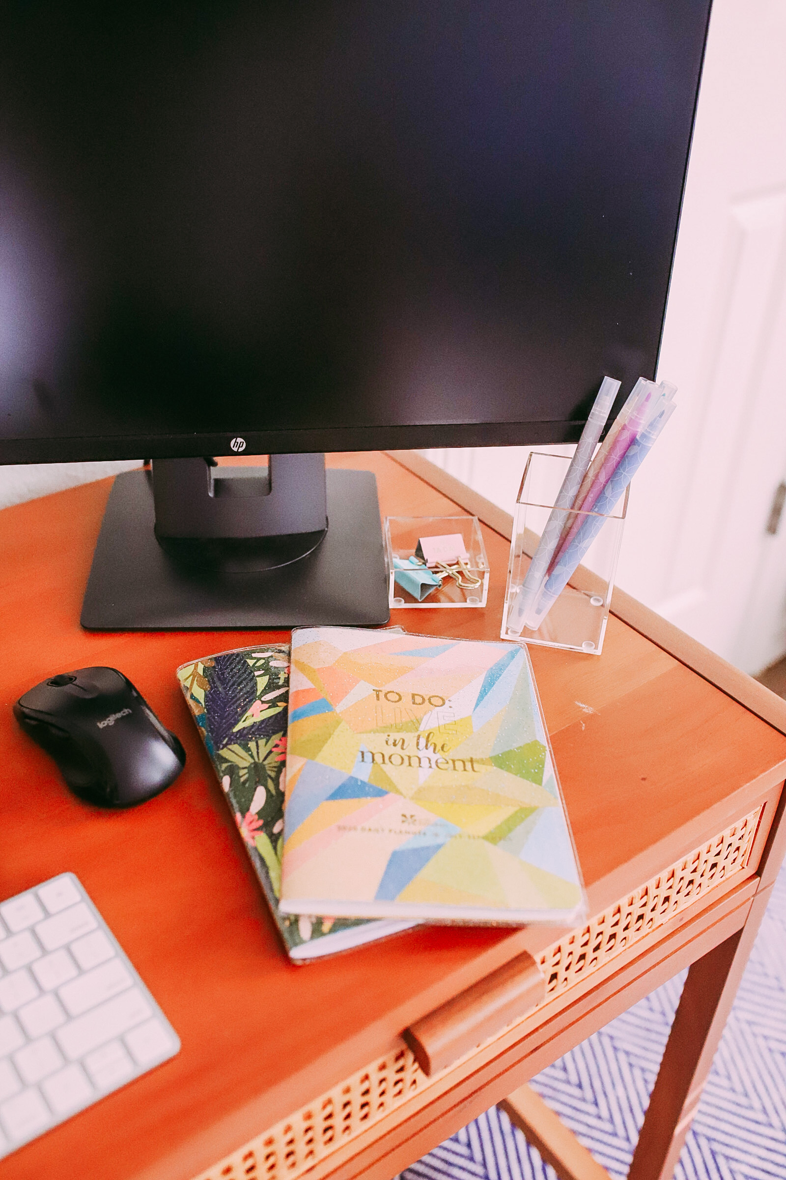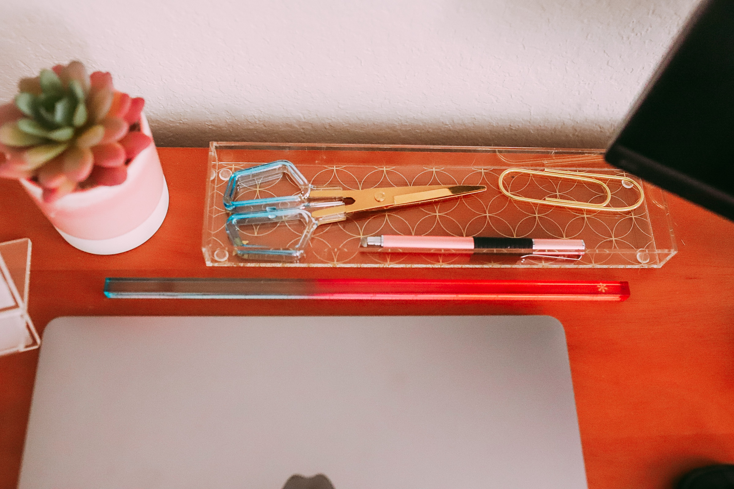 Another fun desk item is the acrylic nesting desk organizing set. As you can see on my desk, this has made everything more organized and instead of having things spread out all over my desk, everything has a spot. Not only is it functional but it’s also stunning. I love the clear acrylic look so it still keeps my desk light and not look cluttered.