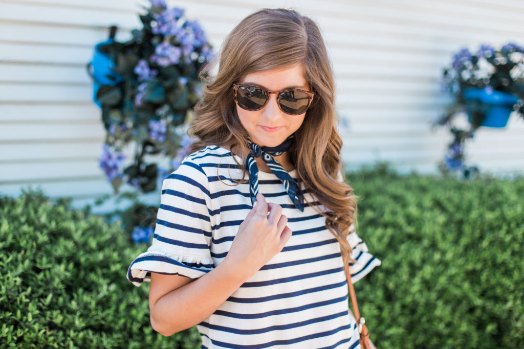 Again, this top is perfect to be dressed up or dressed down with espadrilles or sneakers. The scarf adds a whimsical touch to the overall outfit and the scarf could also double as a cute purse accessory if you tied it to one of the straps.