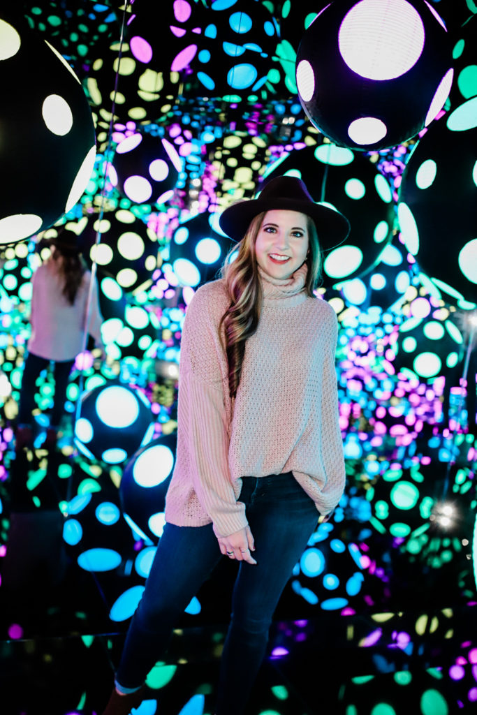 I had seen the Infinity Room all over my Instagram feed but had not had a chance to experience it. When I saw this as part of the itinerary I was so excited. The Infinity Room is small in itself at about 20 feet by 20 feet and only 9 feet high, however, the room is covered in mirrors and filled with light-changing paper lanterns. The effect of the mirrors and the dots make it appear to expand forever.