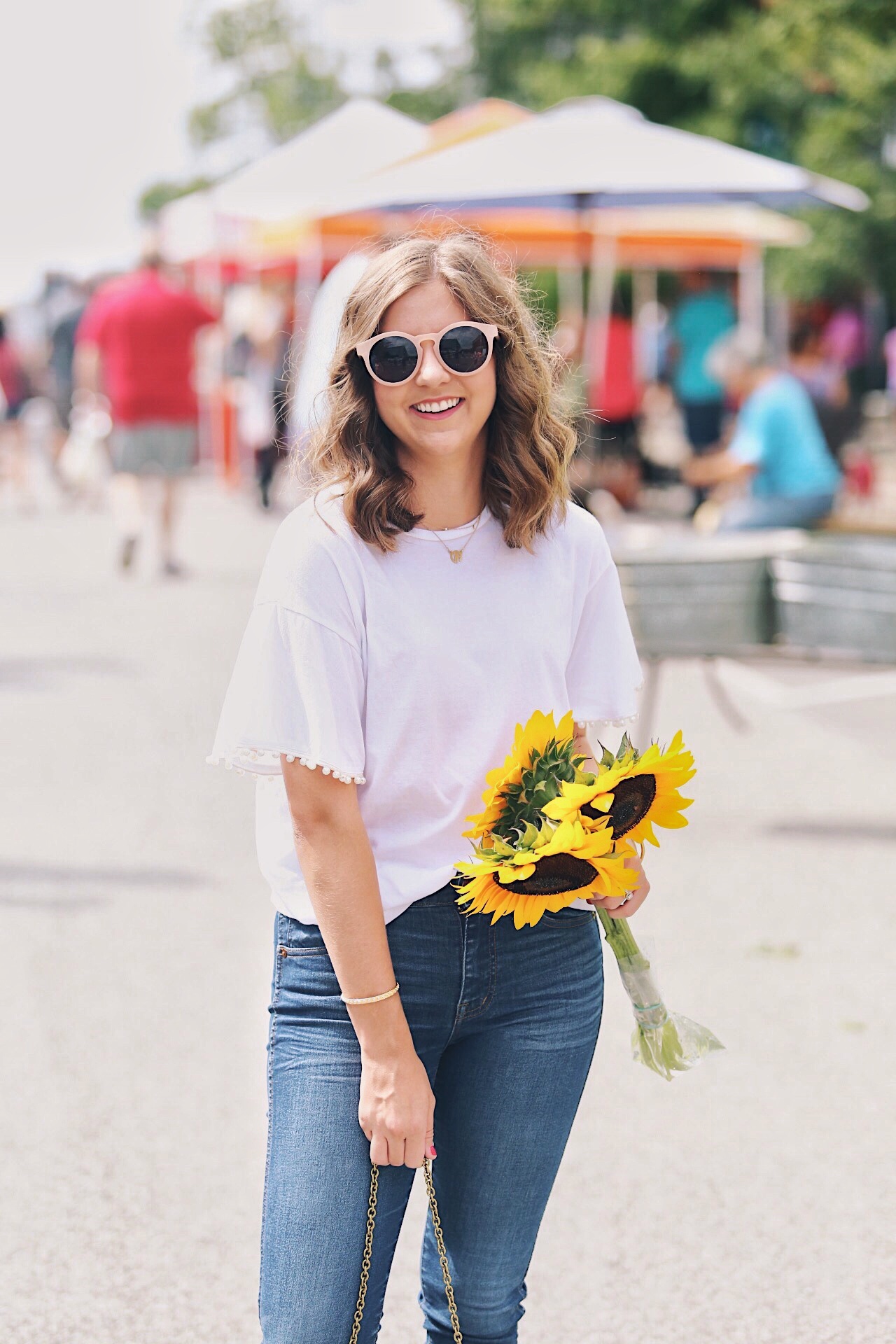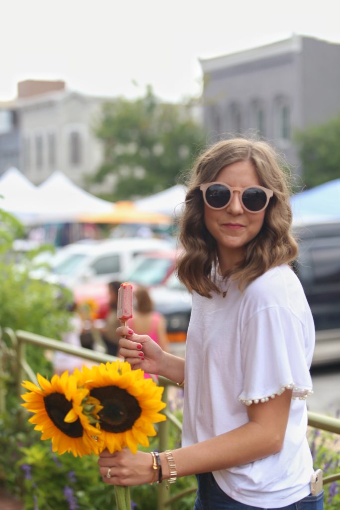 Something that I have been obsessed with since getting married is fresh flowers, something the Fayetteville Farmer’s Market has no shortage of. The sunflowers immediately caught my attention when I walked up! How could they not? They are a beaming ray of sunshine and a gentle reminder of God’s creation.