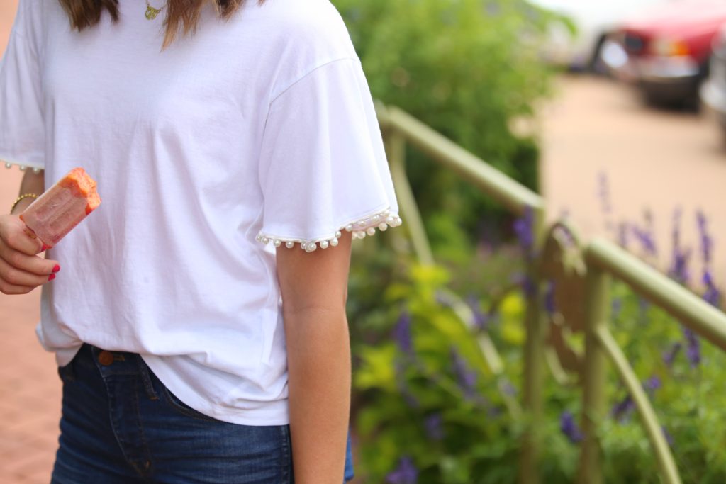 On another note, I was cleaning out my closet this weekend and realized I have an obsession with white t-shirts. I think I counted 8 total. However, I didn’t get rid of any of them. (oops!) I find this is my go to staple piece. I can throw it on and change of the look so easy whether it’s boyfriend jeans, a baseball hat, and slides or skinny jeans, statement earrings and espadrilles.
