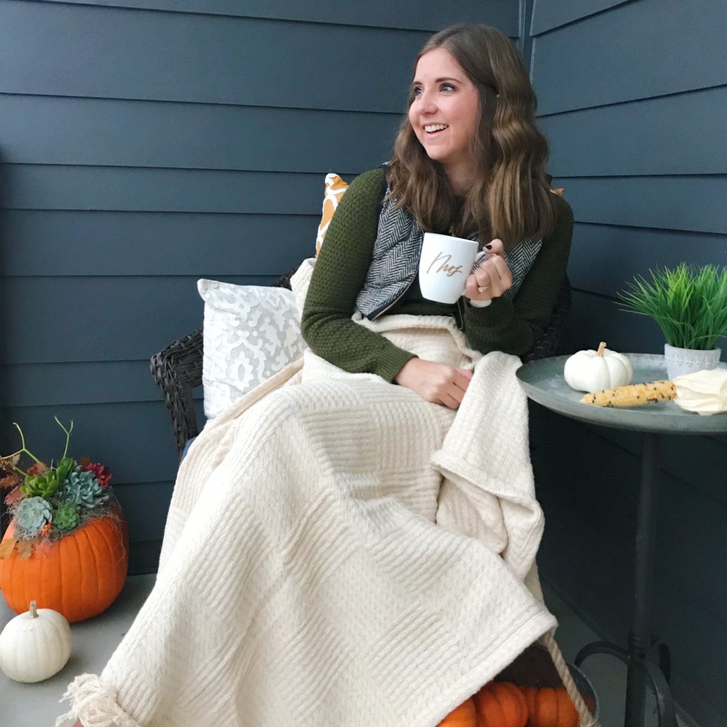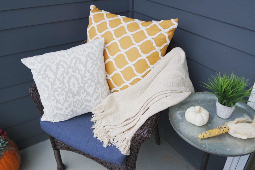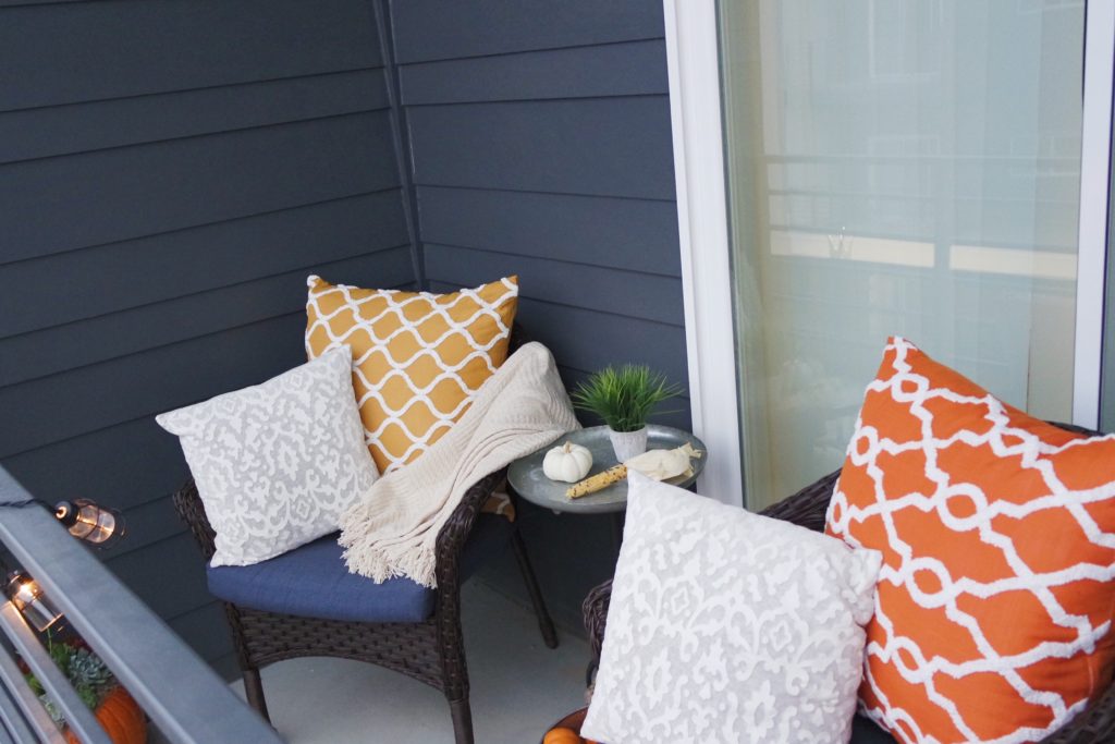 Jared and I moved into our apartment a few months ago. Our home is pretty much complete when it comes to decor, but one area of our home that has been neglected is our patio. Since Fayetteville has a beautiful fall we wanted to put a little pep in our patio’s step. With the help of Gordmans we completely redecorated our patio for fall.