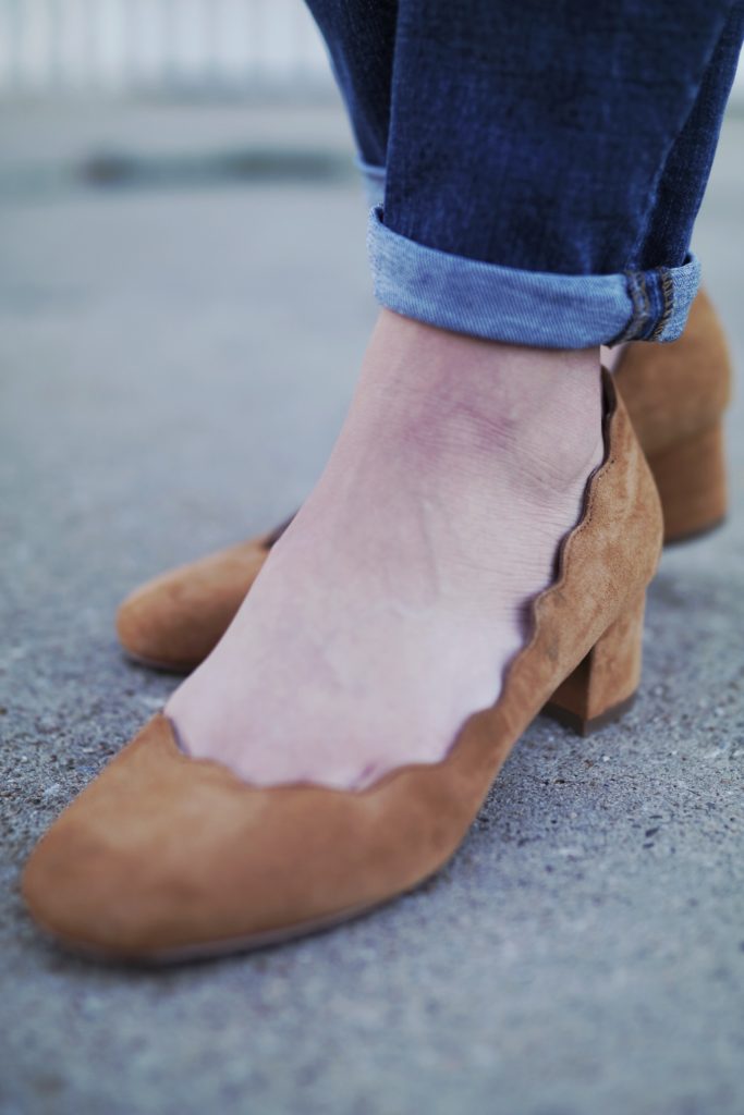The crisp white top gives it an understated elegance, but the light weight material is perfect for a summer date night dinner. I paired the whimsical top with boyfriend jeans for a more laid back lived in look. I completed the look with a low block heel with scallop detail for a polished outfit.