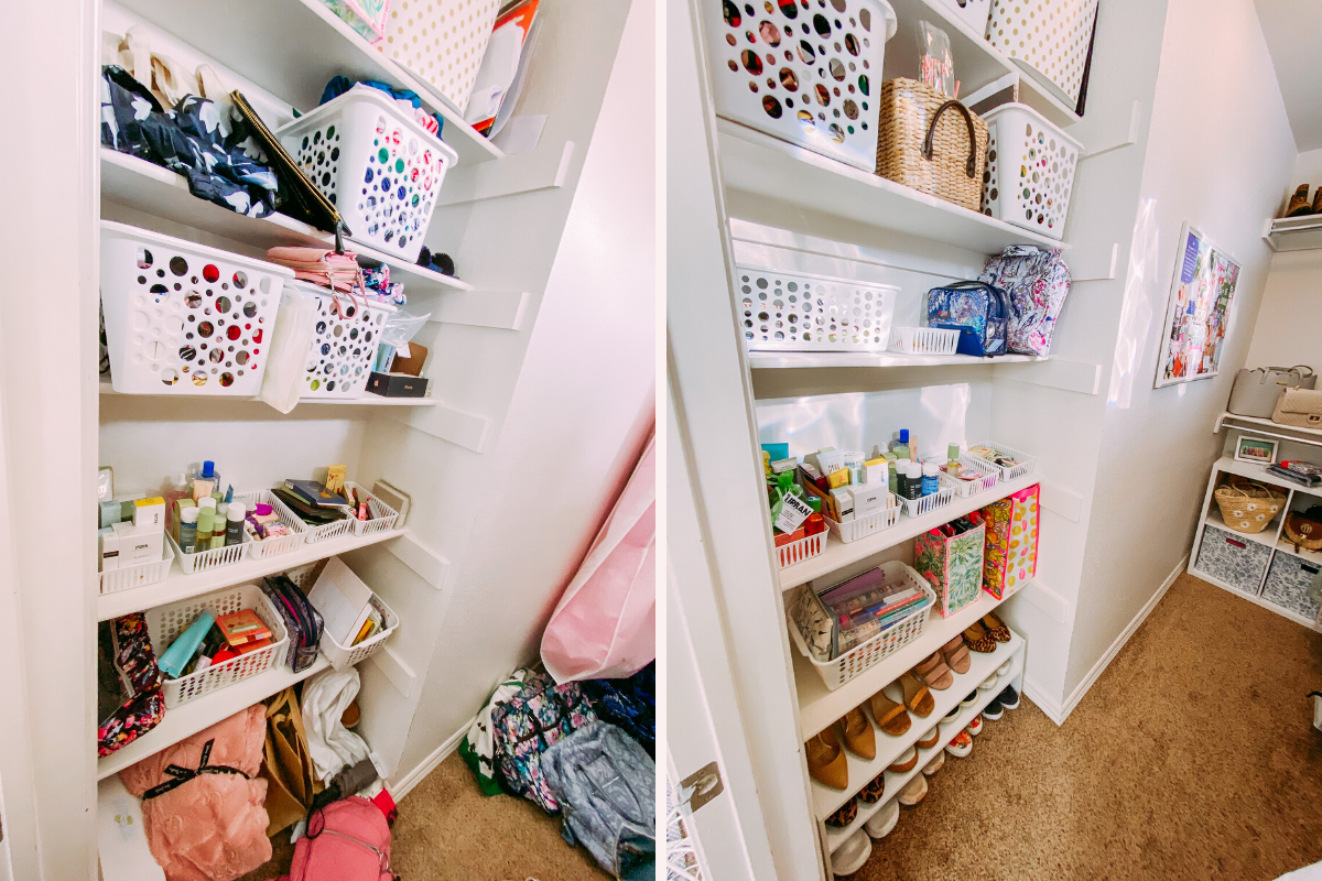 Since I now have a neverending amount of time at home I’ve been tackling some projects I have been meaning to get to, starting with my office closet. One of the favorite things about our house is out closets. That was something that was non-negotiable when we were house hunting because, between Jared and I, we have a lot of clothes. My office closet is kind of catchall and a place where I just throw things and shut the door – I’m sure you have a closet like that too, right?