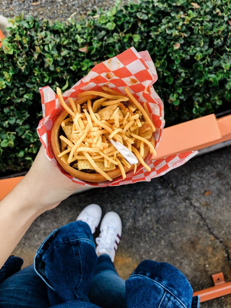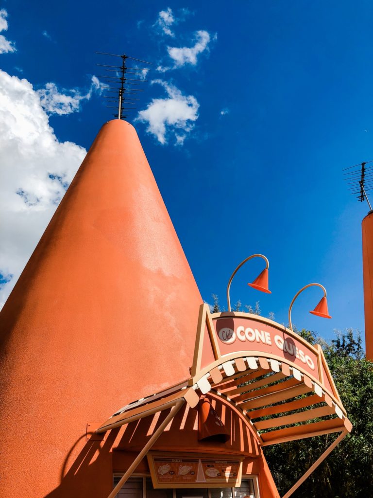 After Guardians, I wandered around a little bit and found myself in Cars Land. I was starving at this point so I grabbed a Chilli Cone Queso (a bread cone with chili, queso, and Fritos!) and a soda and rested. I made some friends at lunch who gave me some tips on where to go next. I loved sitting and watching all the kids take photos of Lighting McQueen. Their joy was contagious!