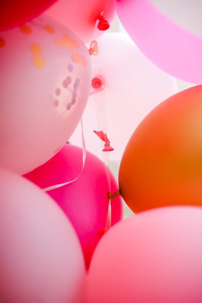 We also made the whole garland the night before and then hung it up the next day with no problems. I would not recommend the clear balloons with confetti for the outside. Due to the heat and humidity, they became cloudy, which wasn’t a big deal but something to think about!