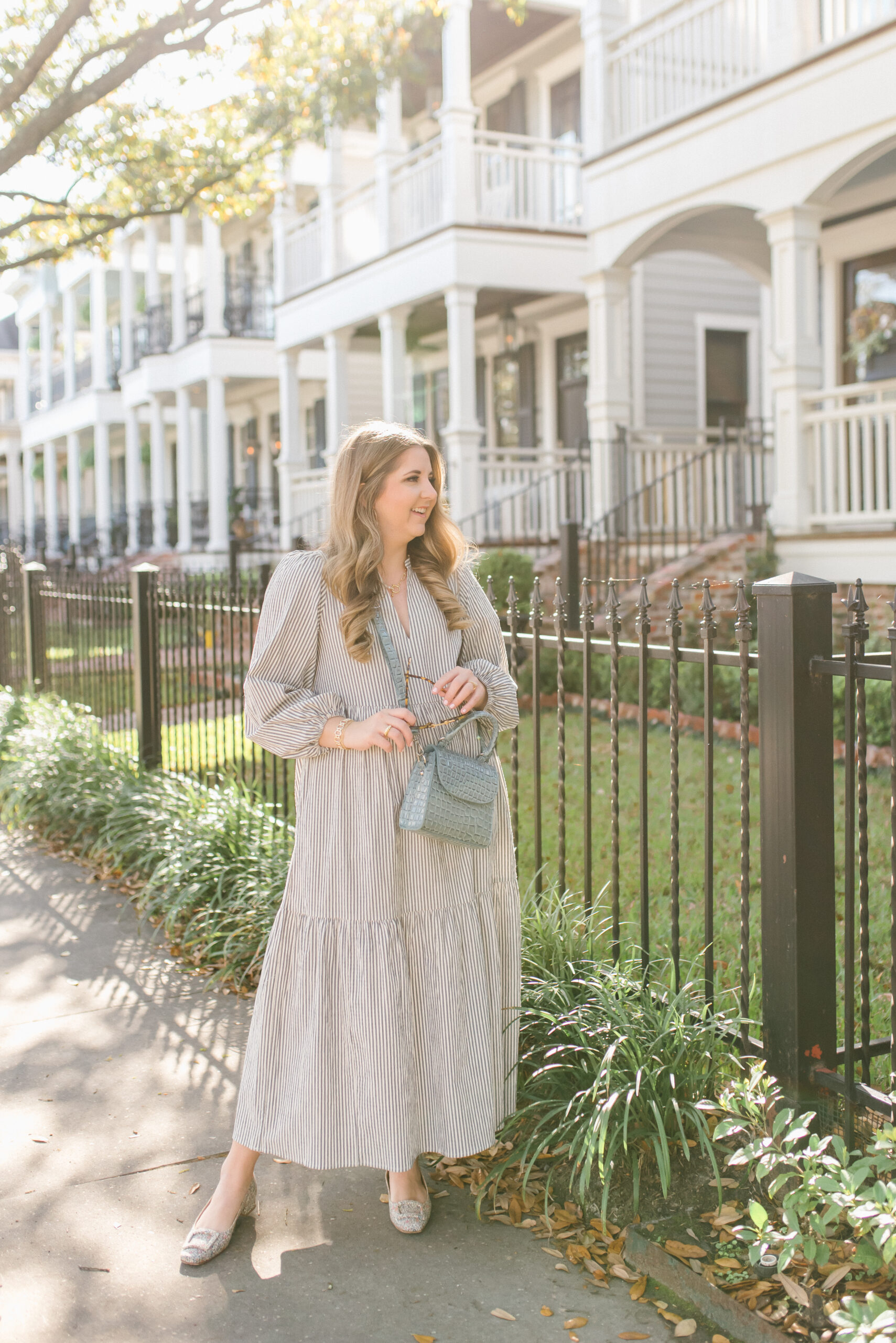 When it comes to spring and summer I live in dresses, especially in the Houston heat I find them to be way more comfortable than jeans or shorts. I love casual maxi dresses because they can easily be styled for many different occasions. I prefer one to have some type of sleeve just because it makes me feel more confident. This Target dress is a total gem and it comes in several different prints/colors. Here’s a closer look at how to style a casual maxi dress with sleeves for summer.