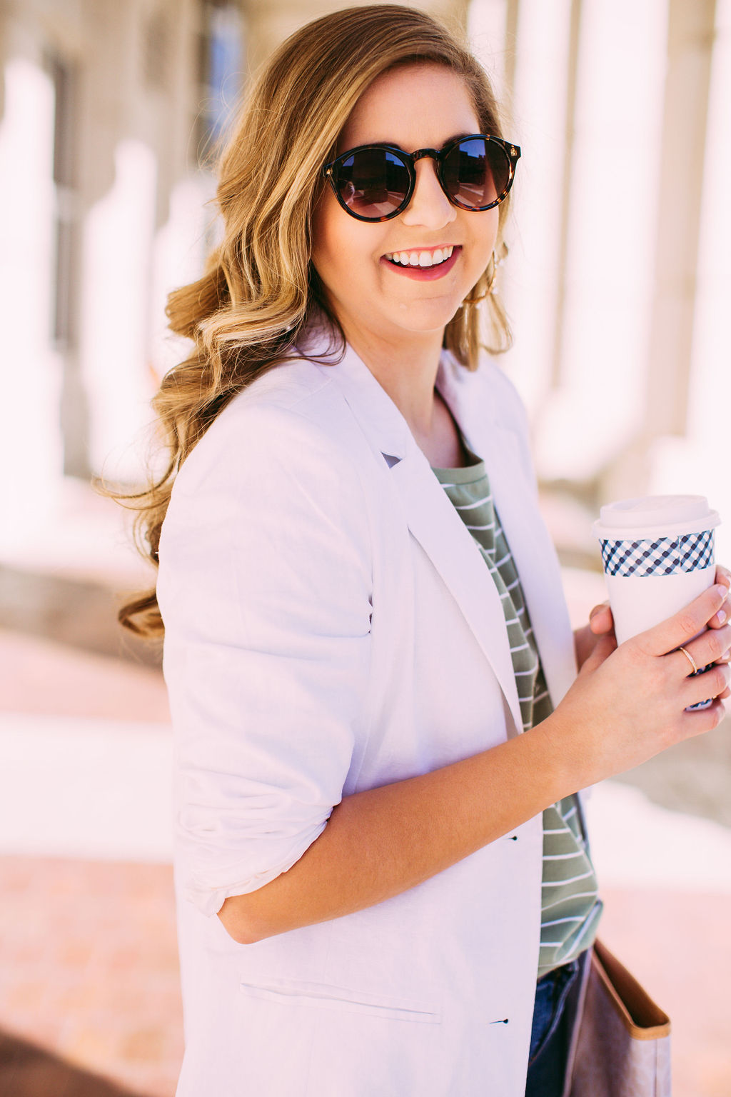 I love linen because it’s such a breathable lightweight fabric and in the south, breathable fabric is a must-have in the warmer months. The fabric of this blazer makes it easy to wear now and wear throughout August.