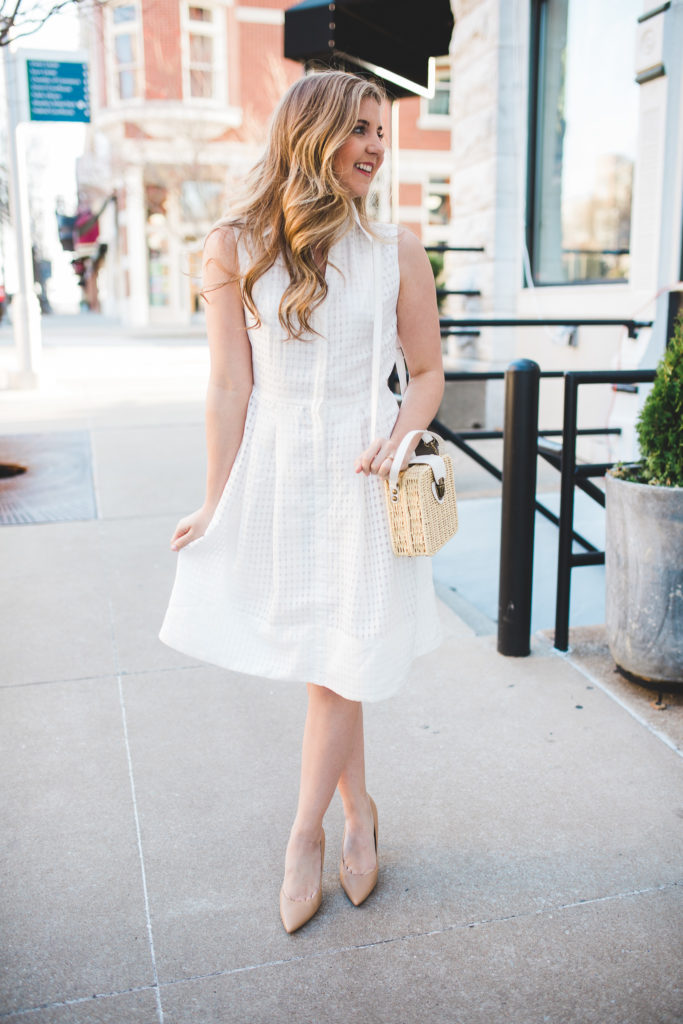 White dresses are on my favorite Spring staples because they can be worn so many different ways. I found this beautiful fit and flare dress for only $40 and wanted to share how to style a white eyelet dress from day to night.