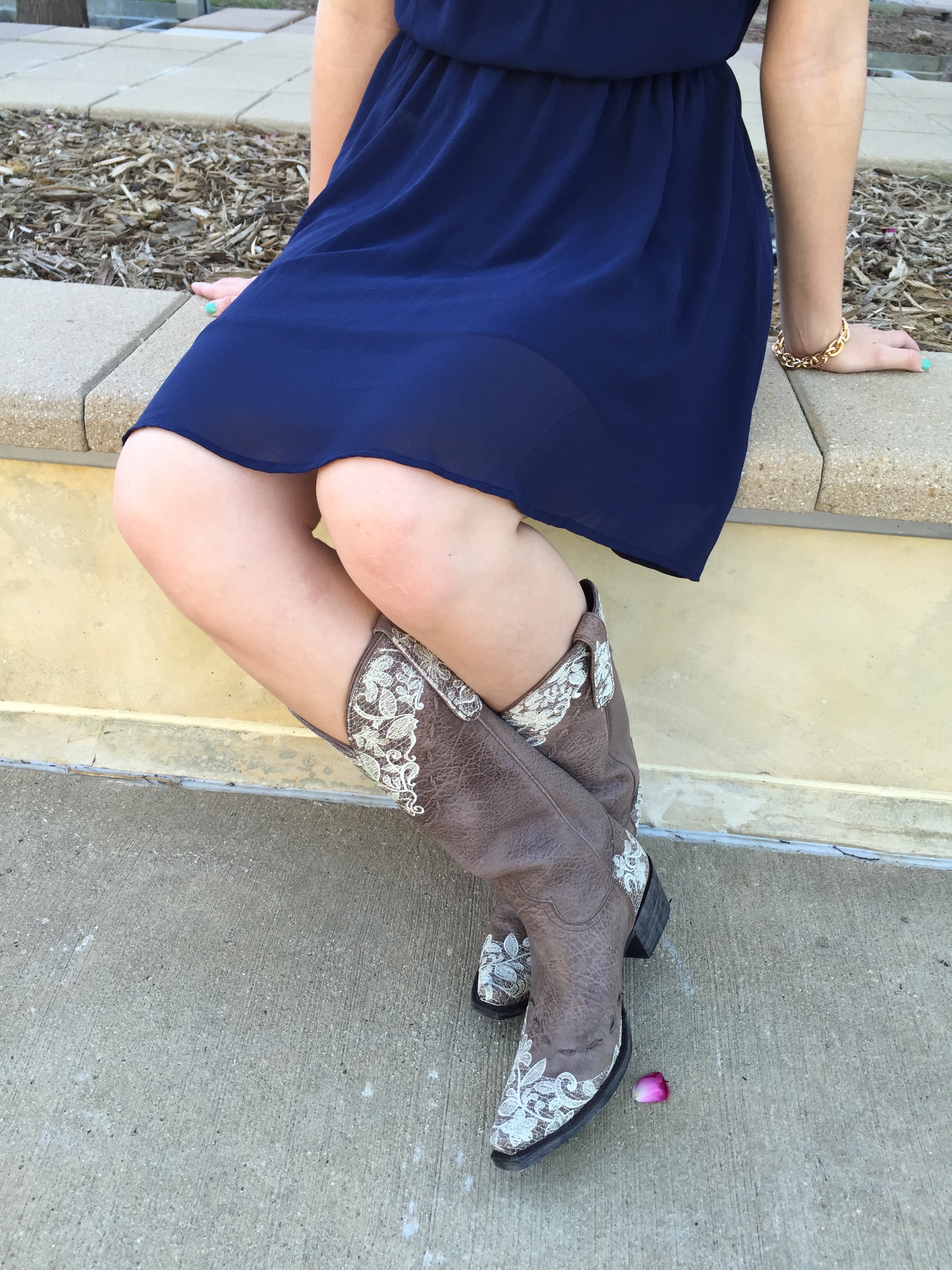 Cowboy boots come in many different shapes, sizes and colors. For someone who is looking for a first pair or a new pair, it can be very overwhelming. Most people head to Justin Boots or Cavender’s but I like something a little off the beaten path. These brown boots with lace detailing from Lane Boots are right up my alley! Now most people like rhinestones on their cowboy boots but I find the lace adds an unexpected girly flair.