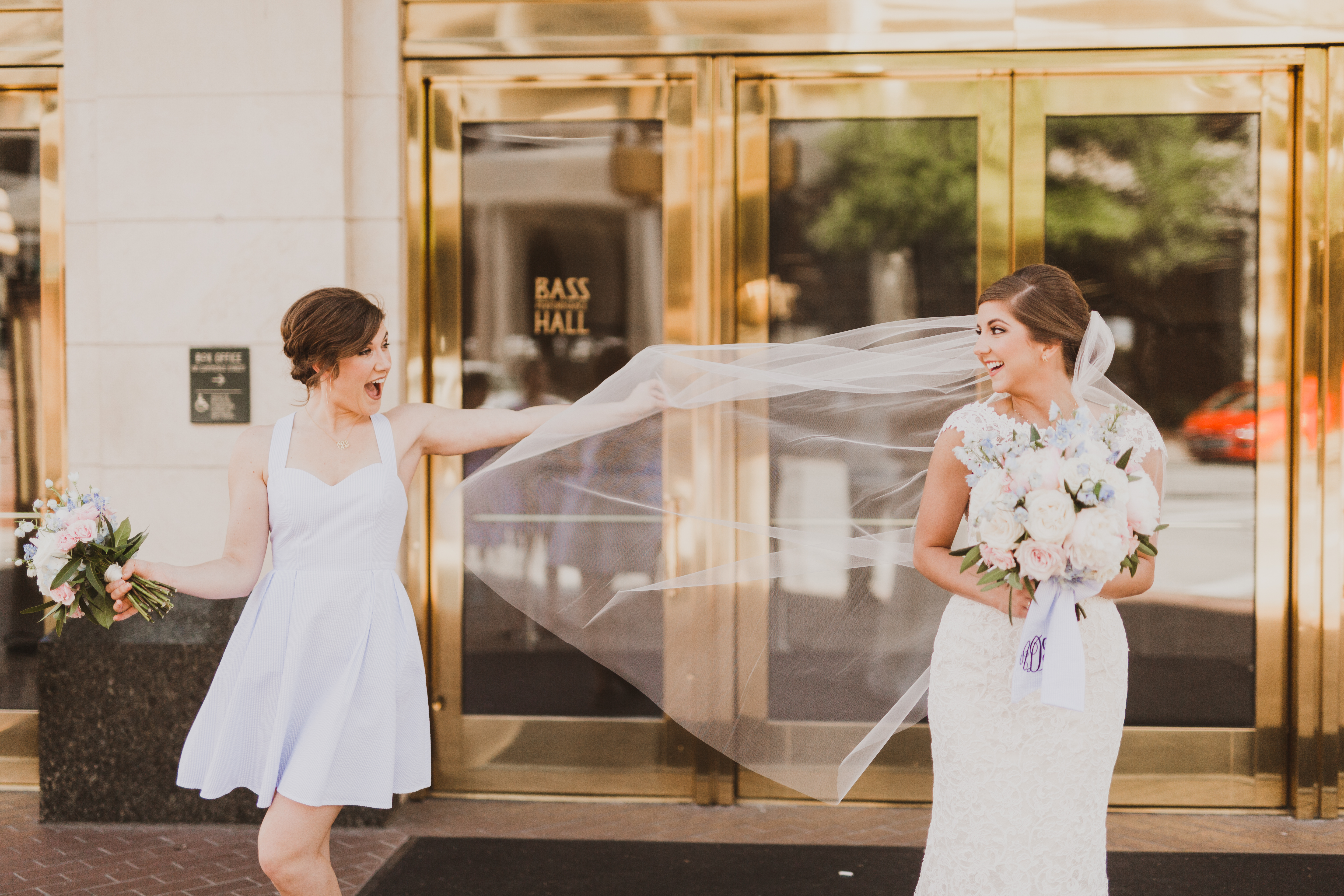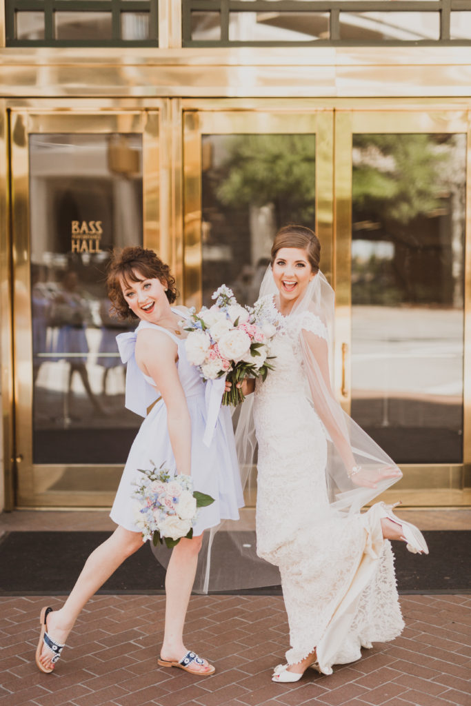 My favorite part about the Lauren James Bridesmaids dresses is they flattering on everyone! You would think because the back is so open and revealing that it would make it unflattering, but because the bow and the straps it really camouflages any problem area. The waist line also played a big part in making everyone look their slimmest. Plus the dress had pockets!