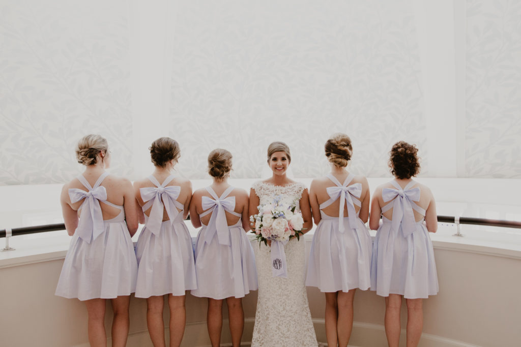 Before I was even engaged and before I even picked out who I wanted to be my bridesmaids, I knew I wanted my girls in Lauren James Bridesmaids Dresses. I’ve always loved the feminine detail of the Livingston dress from Lauren James. The big bow and classic seersucker just screamed southern wedding to me. When Jared proposed and we were both coincidentally wearing seersucker I knew it was a sign.