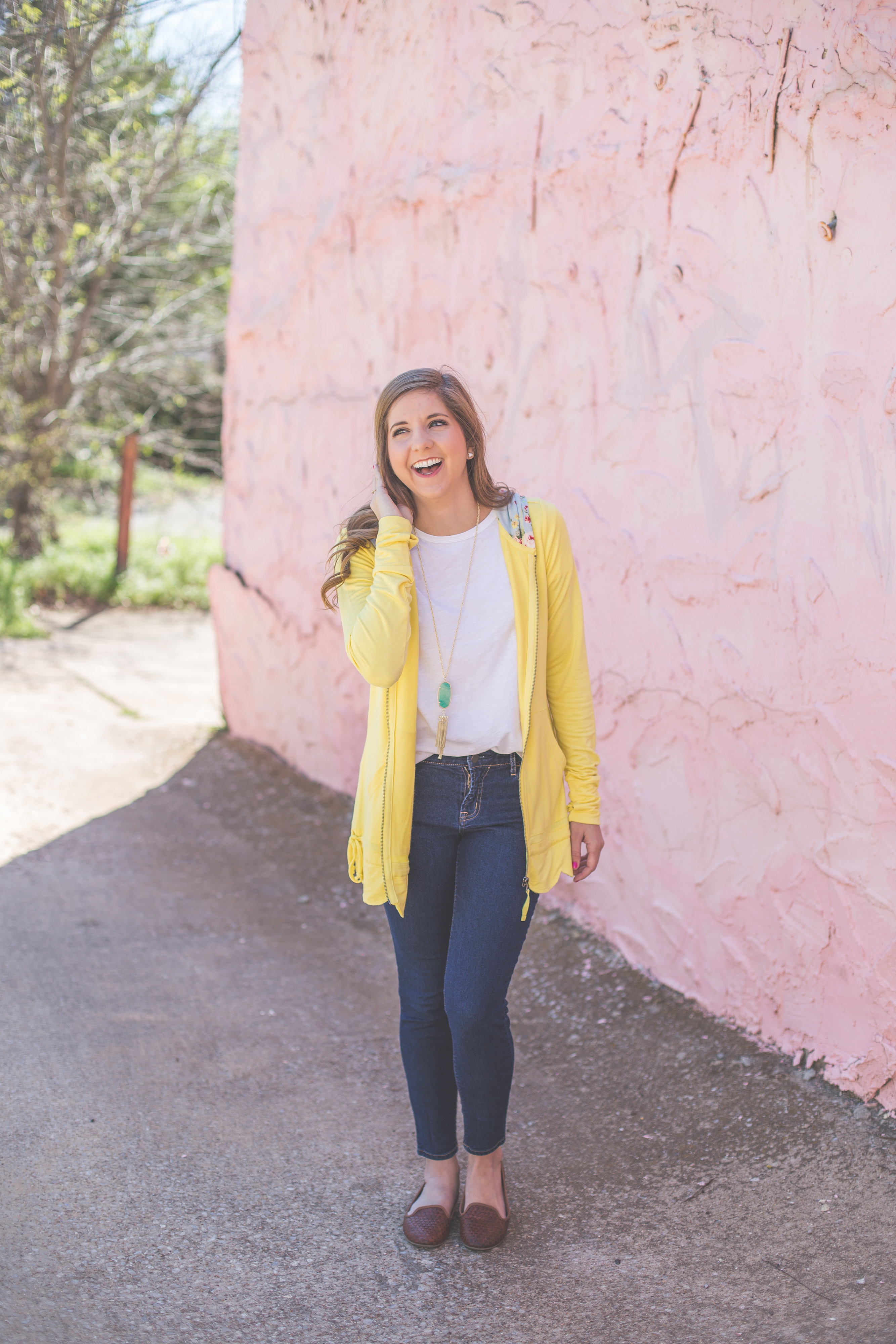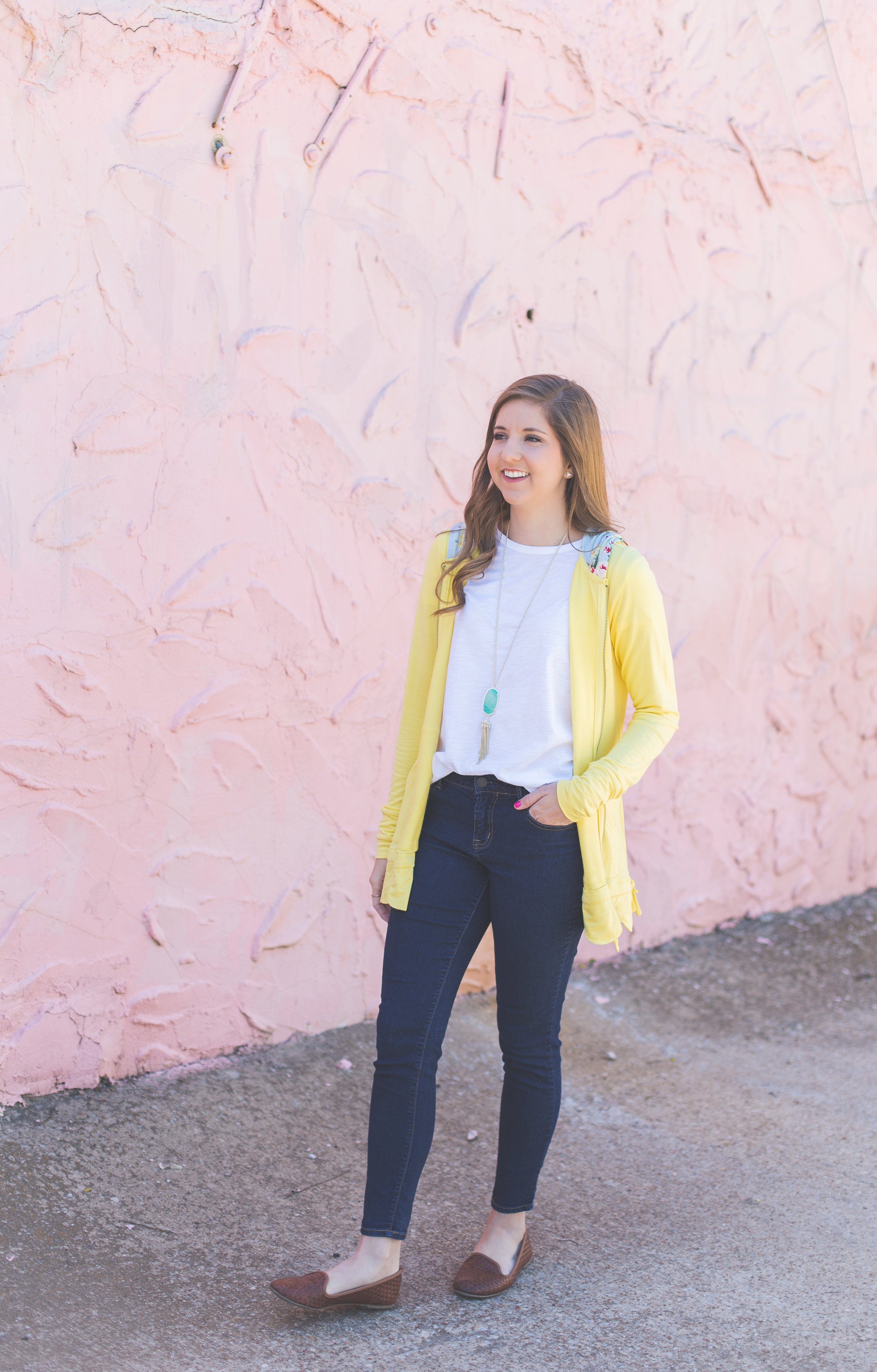 This look is perfect for a spring day or a chilly summer night or a lazy Saturday running errands. This outfit is the lazy girl’s dream! Throw it on with a t-shirt and head out the door!