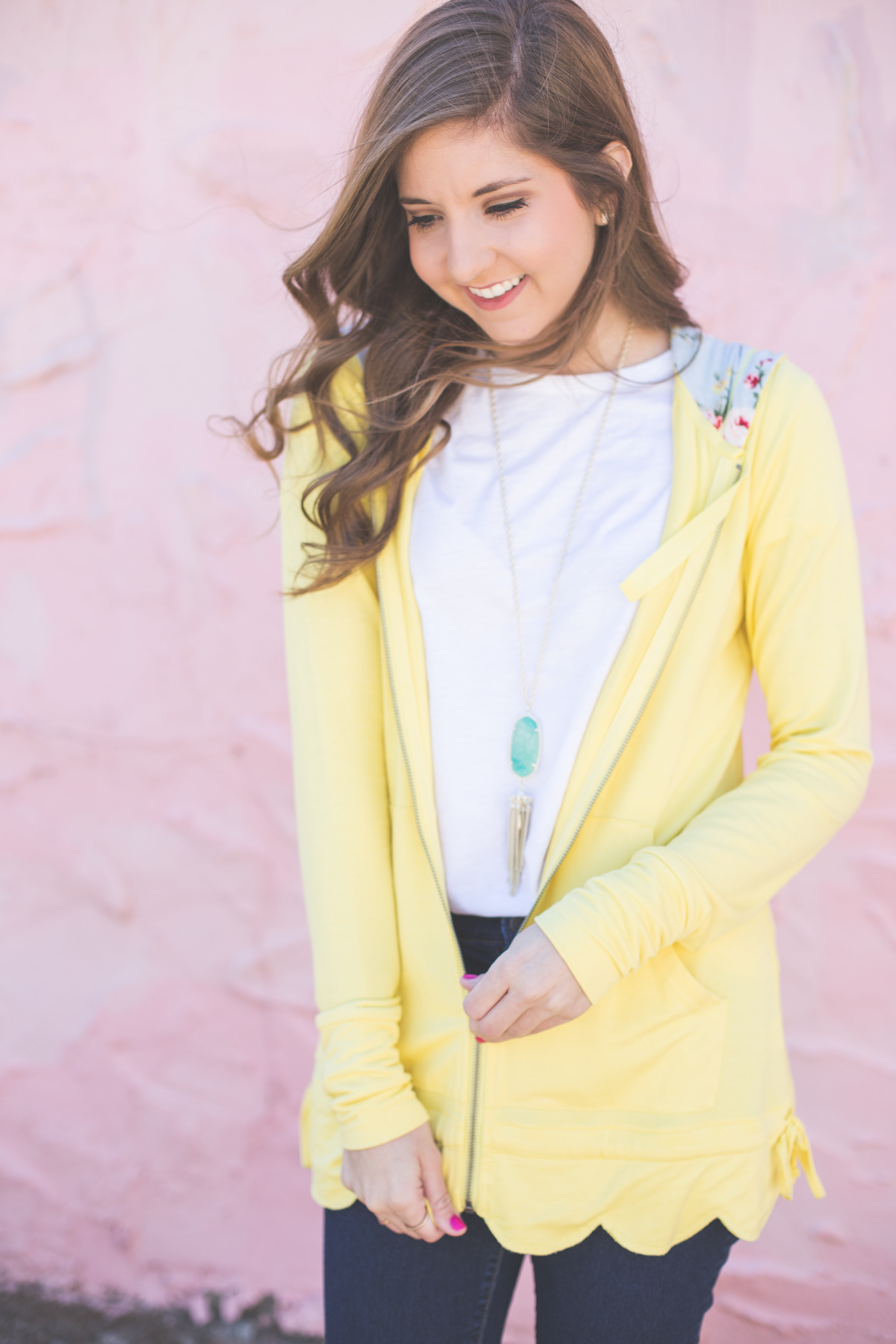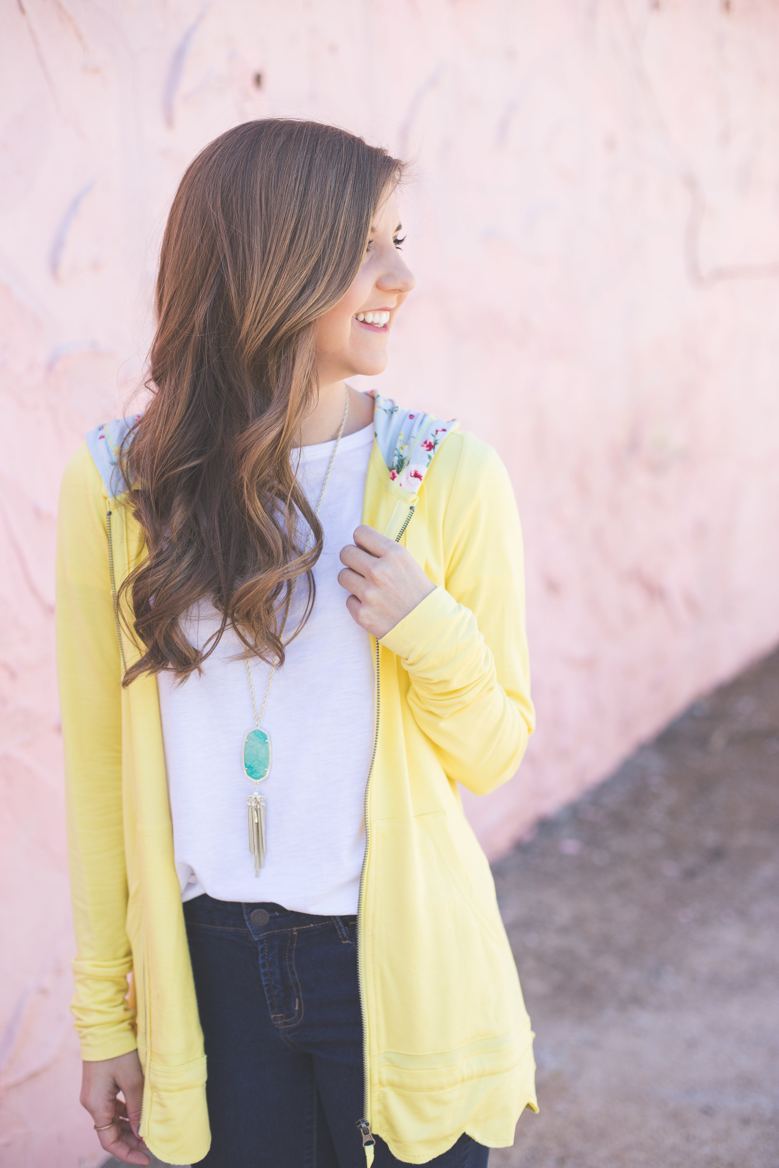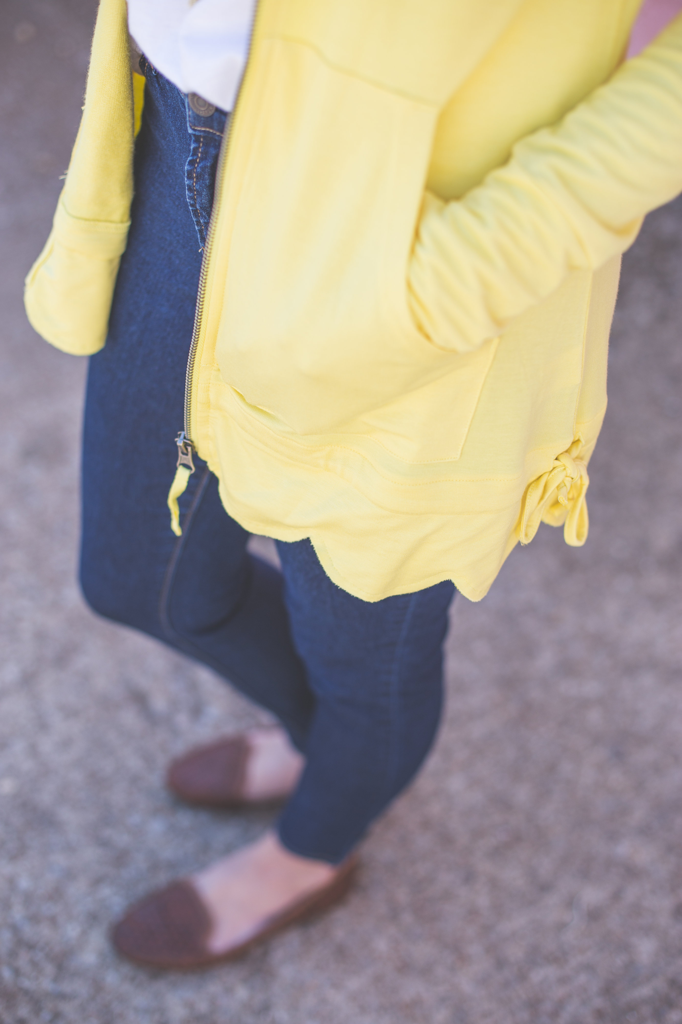 This hoodie is precious! From the color to the scallops – I love everything about it!