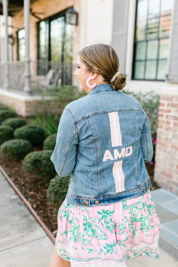 This denim jacket is a twist on a classic with a personalized monogram added to the back. This is completely customizable and so unique. I went with pink, of course, but you can really do any style. Check out more here! I always cuff my denim jacket sleeves for a more stylized lived-in look. This makes it more casual and intentionally styled.
