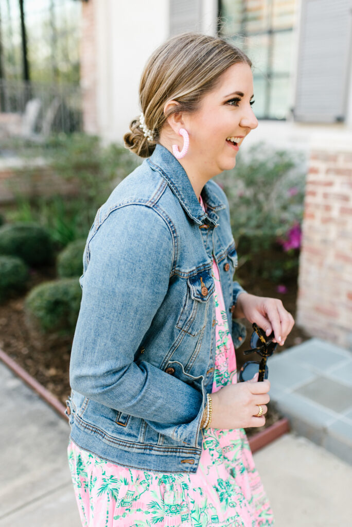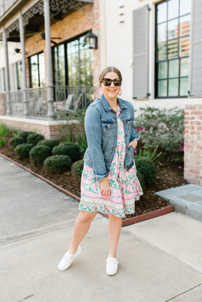 The easiest way to dress down any Lilly Pulitzer dress is with a denim jacket and sneakers. If you don’t have a classic pair of white sneakers in your closet, you need to get some for Spring and Summer. They go with everything and add a crisp clean yet still casual style to any outfit. I own a few different pairs but my go-to for Lilly is these white keds.
