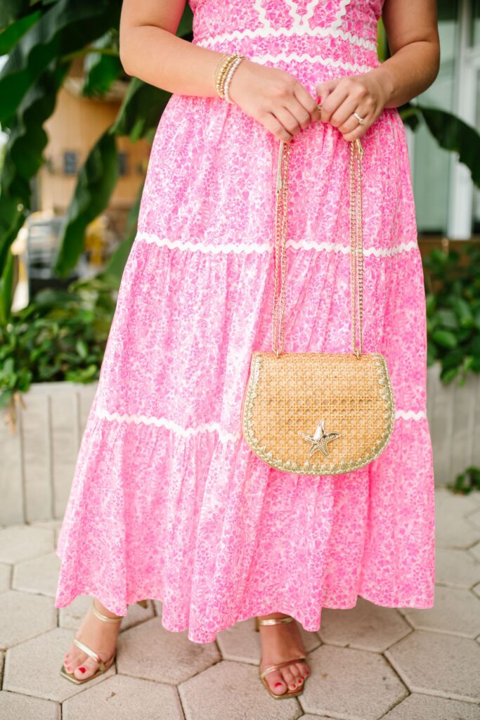 You know my love for Lilly runs deep but over the years my closet has been bursting at the seams with colorful items from Lilly Pulitzer so I’ve scaled back a little this year. I shifted my focus on to the Lilly swim this summer and have been rewearing some old classics. However, the Lilly Pulitzer Pollie Midi Dress caught my eye and if there is one dress you buy from Lilly this season it needs to be this one!