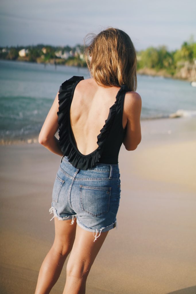 Something new for me this season was a one piece. When I think of one pieces I think of the ugly one pieces I used to half to wear to church camp. This one from Target is so cute and very functional paired with denim shorts (no coverup needed!). The modern silhouette keeps in modest but gives a fun aspect to the suit with the scallop ruffles and the low back. This was perfect for our beach excursion, the straps helped with keeping everything in place and the dark color kept me worry free of stains.