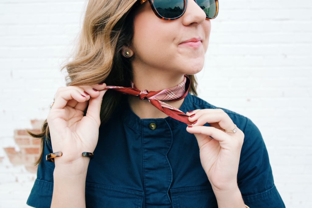 A big trend this fall is neckties and I am all about it! I actually bought two men’s pocket squares for my purse to add some pizzazz, like I showed on my Instagram not too long ago, but I threw the extra one on with a dress and fell in love!
