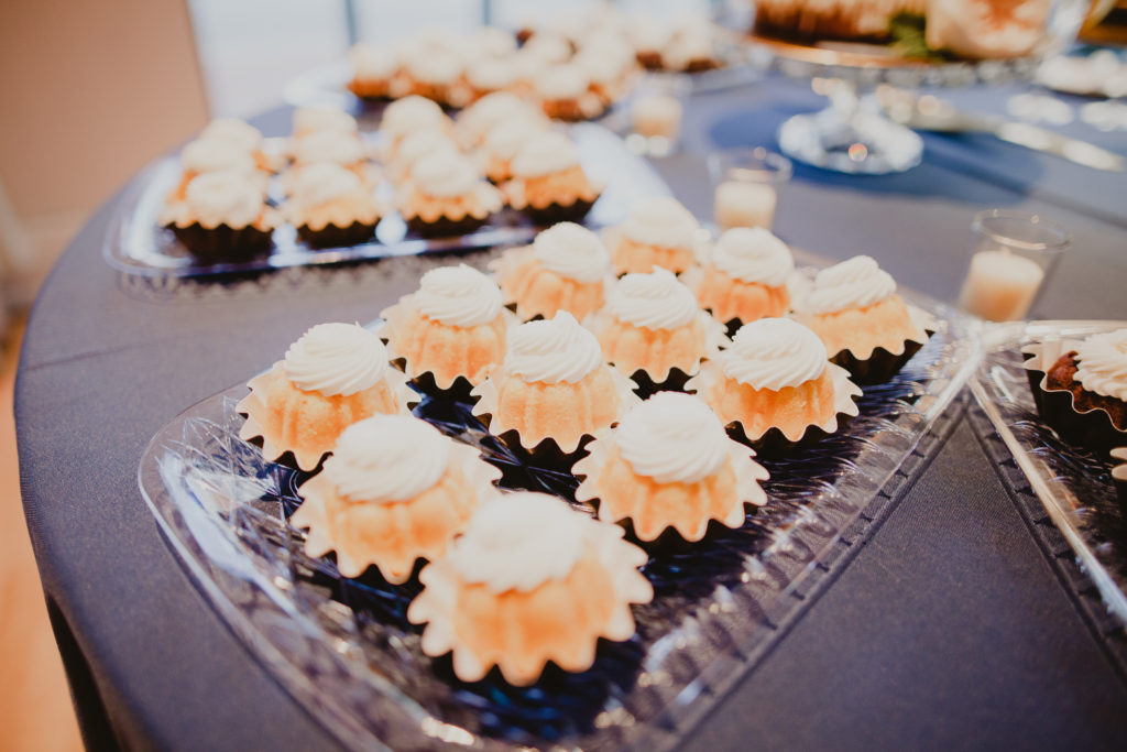 One night Jared and I were meeting with our wedding planner and she asked about the cake. I told her we just weren’t really cake people and she said that’s fine, let’s look at some non-traditional wedding cake ideas. Jokingly, Jared said we should do a Nothing Bundt Cake and we instantly loved the idea! It was so cost efficient and such a fun way to switch things up. We had a two-tiered layered cake for us to cut and then had bundtinis for all the guests in different flavors.