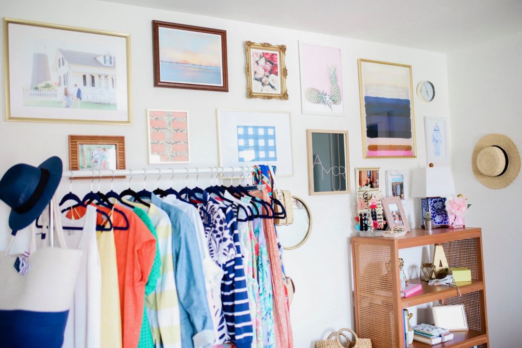I knew I wanted a clothing rack and just had this for a long time, then one Saturday out of boredom I decided to do an impromptu gallery wall. I had no process or plan, just started hanging things up that I already had and I am SO happy with how it turned out.