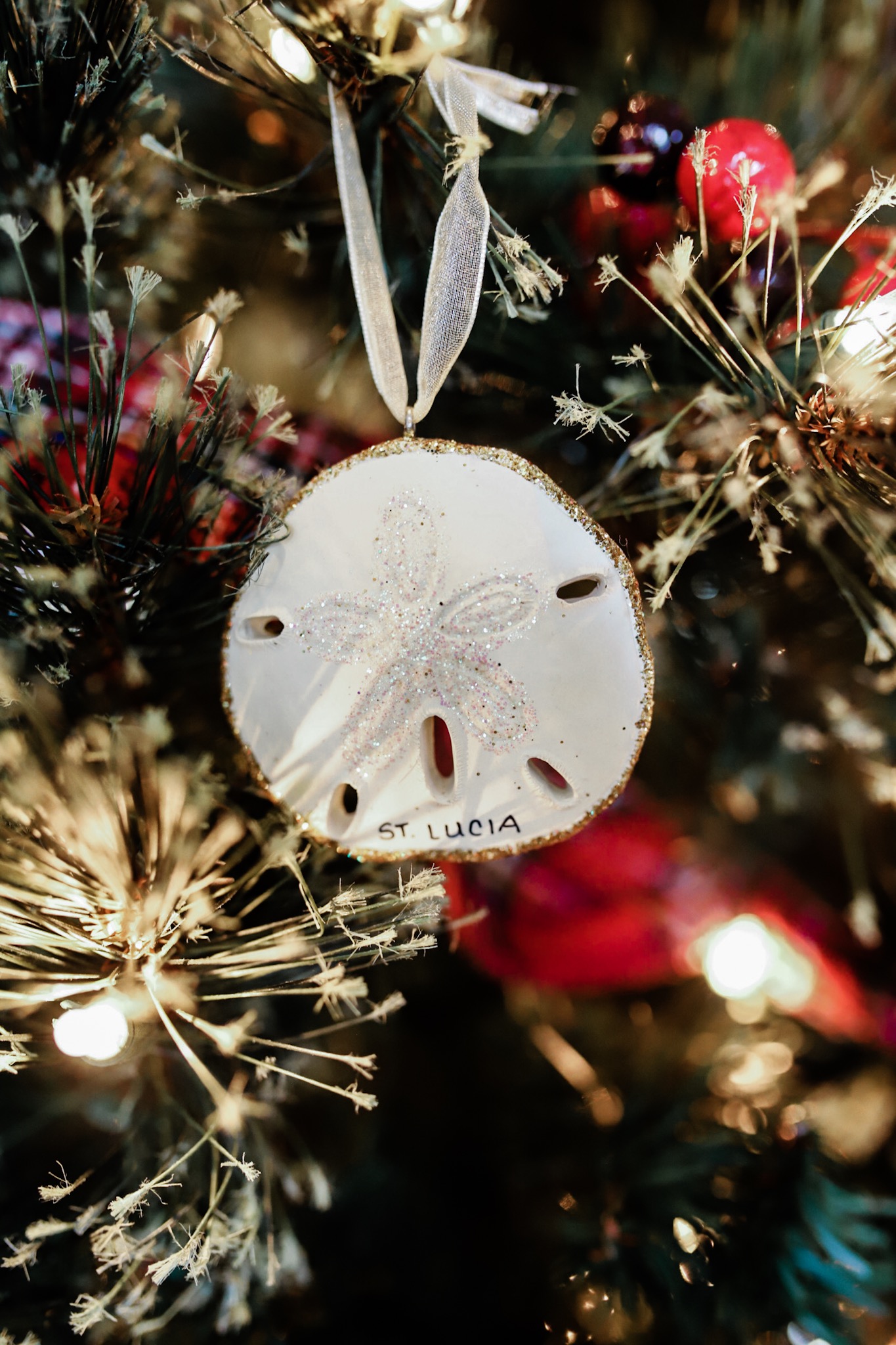 This was the ornament that spurred our travel ornament tradition. We got this ornament on our honeymoon when we couldn’t decide what souvenirs we wanted. I love the simplicity of the sand dollar with the gold glitter, but also every year when we pull out ornaments we get to reminisce on our honeymoon.